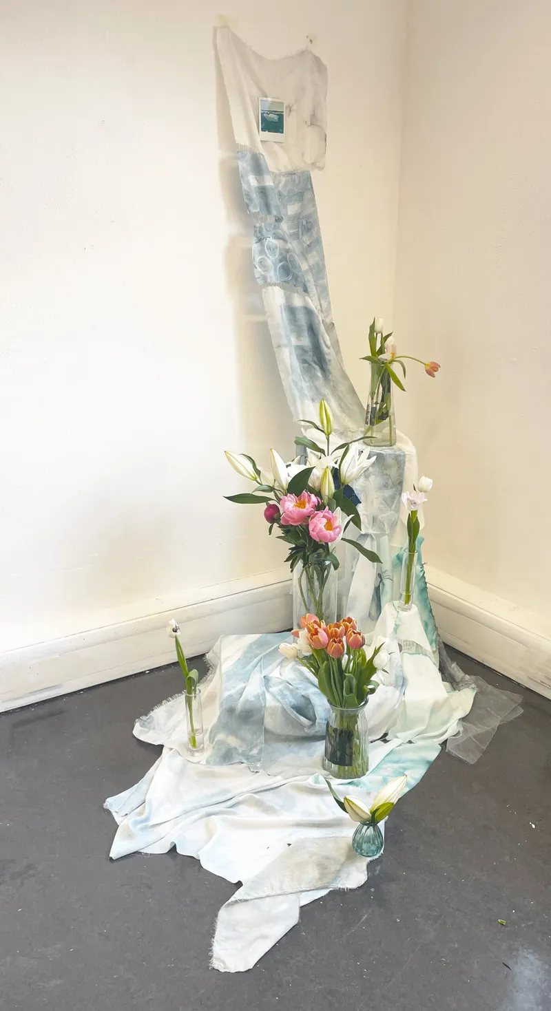 This work is like a tomb for burying memories. I use flowers as a time device, and add new bouquets every week as a contrast, signalling the change of memories from old to new.