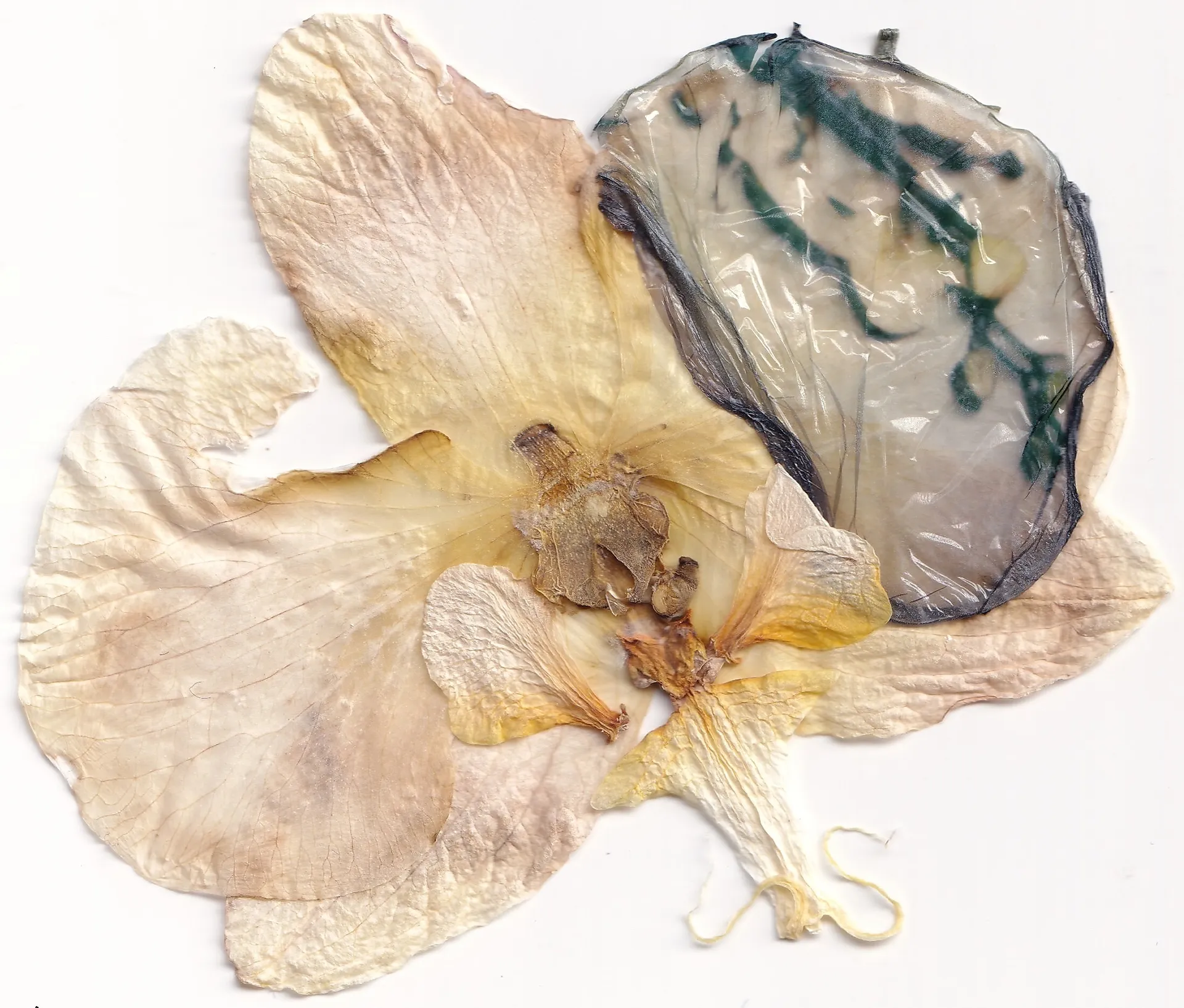For this piece I used photography and blue print as my main mediums, as well as the technique of transferring Polaroid photographs as my main means of expression. I cut the Polaroids and transferred them onto the flowers, letting them bloom with the flowers until they wilted, creating a time installation.