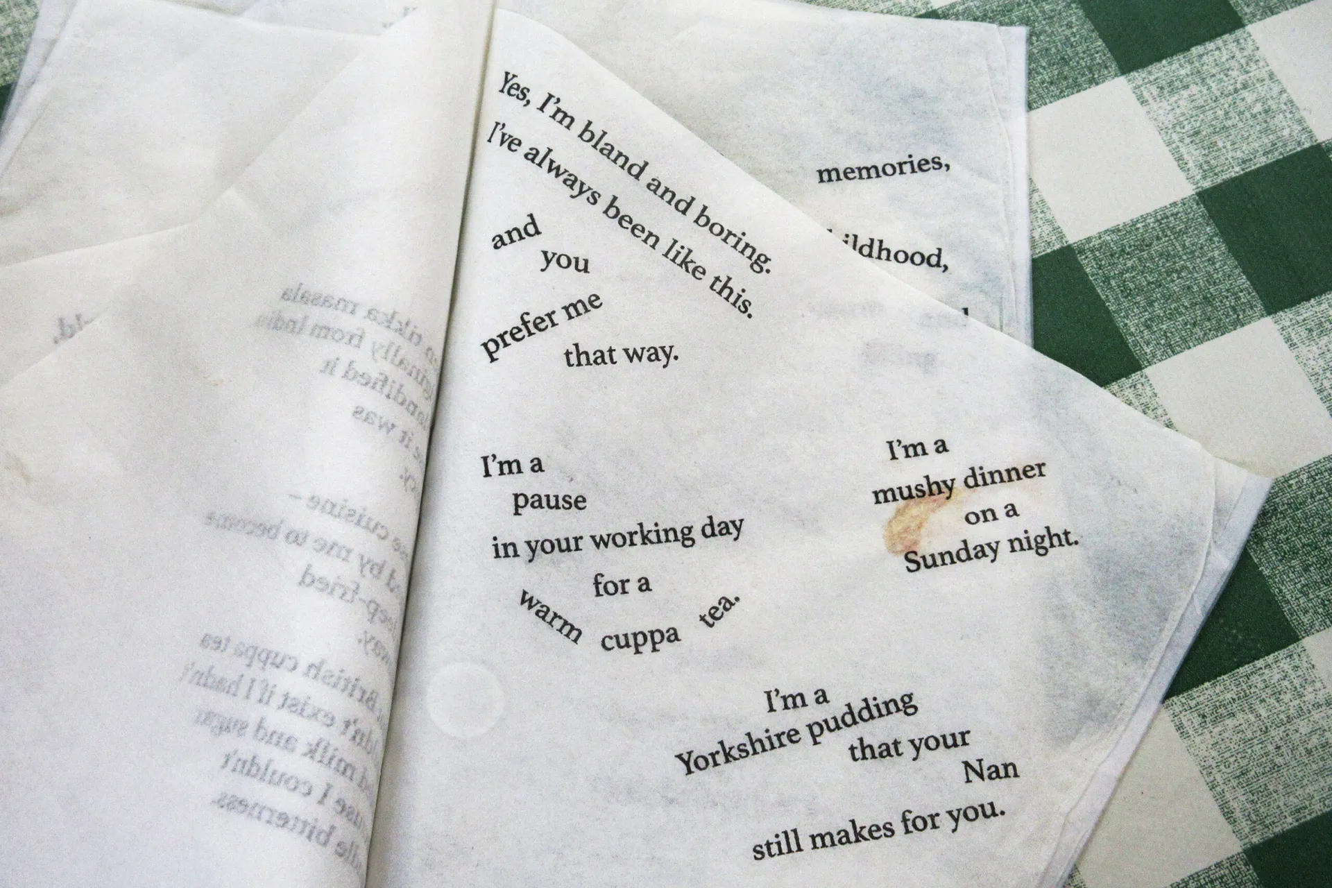 Although British food isn’t necessarily the best food ever, it still deserves appreciation for the comfort and uncomplicated food it provides. The napkin publication I created aims to give a voice to British food, letting the cuisine speak for itself.