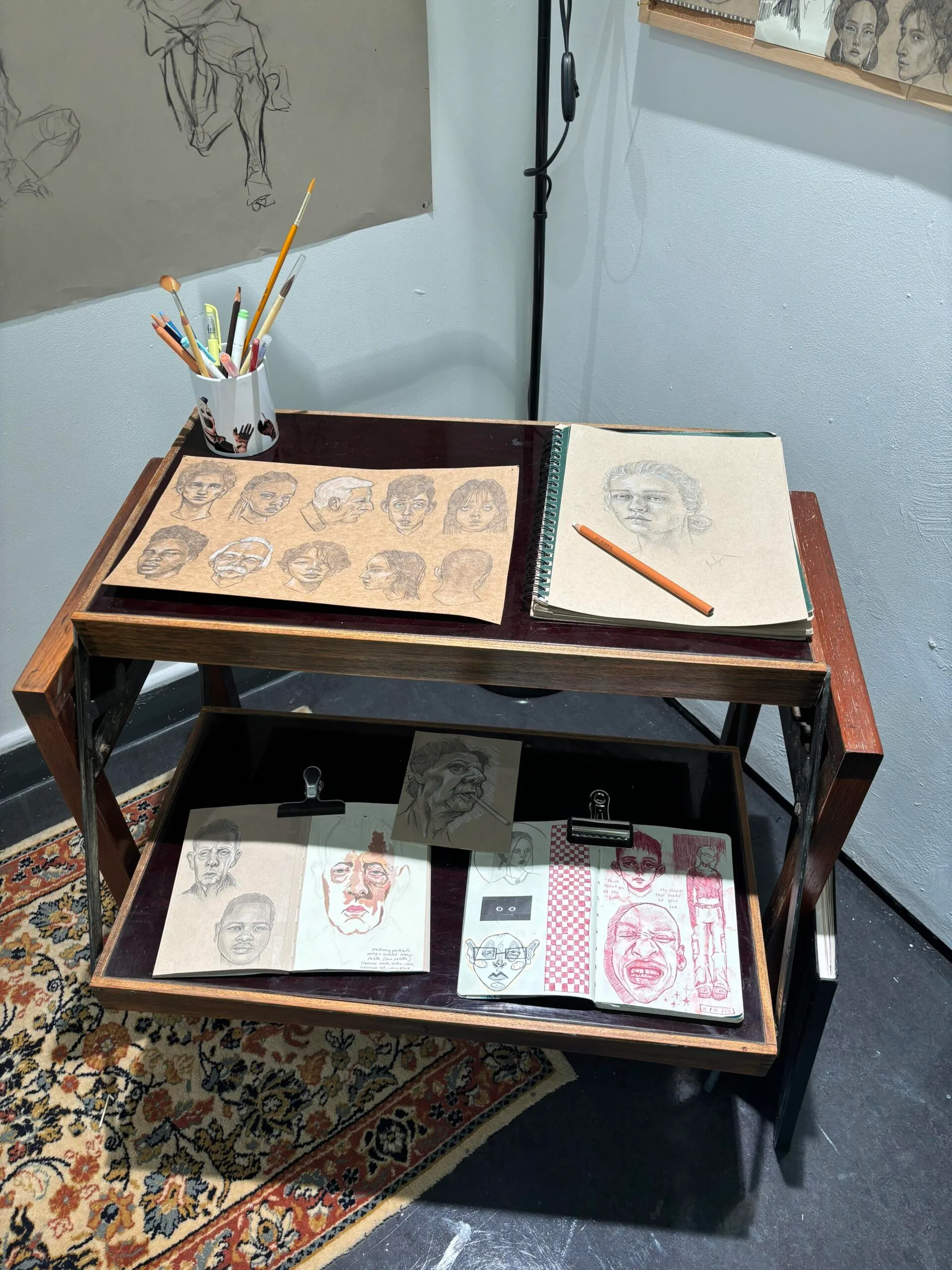 My practice centres around drawing, my main enjoyment in art stemming from filling sketchbooks and capturing images and objects I come across every day. I am drawn to the straightforward nature of drawing, and the intimacy I find in capturing shapes and images traditionally rather than digitally.