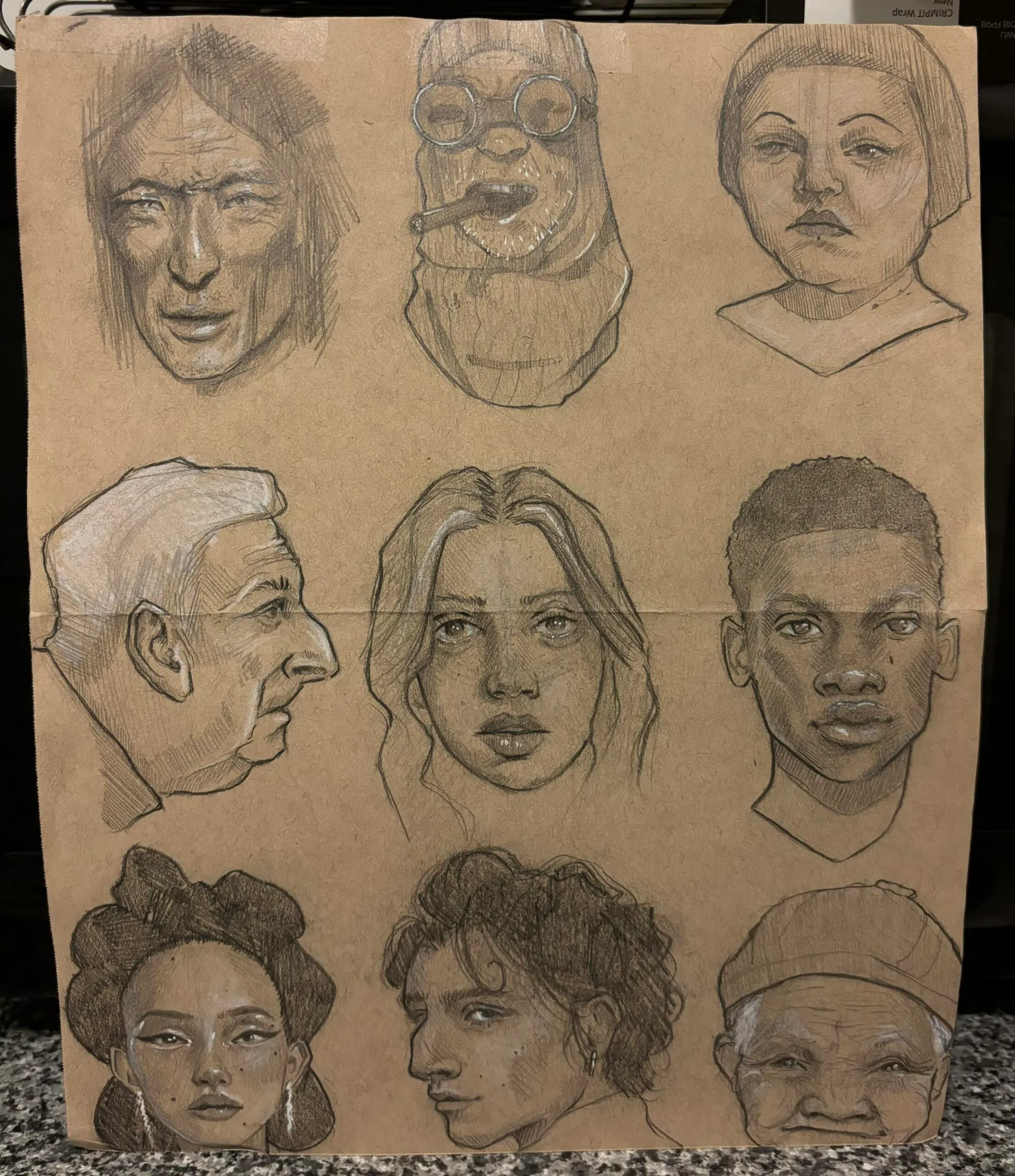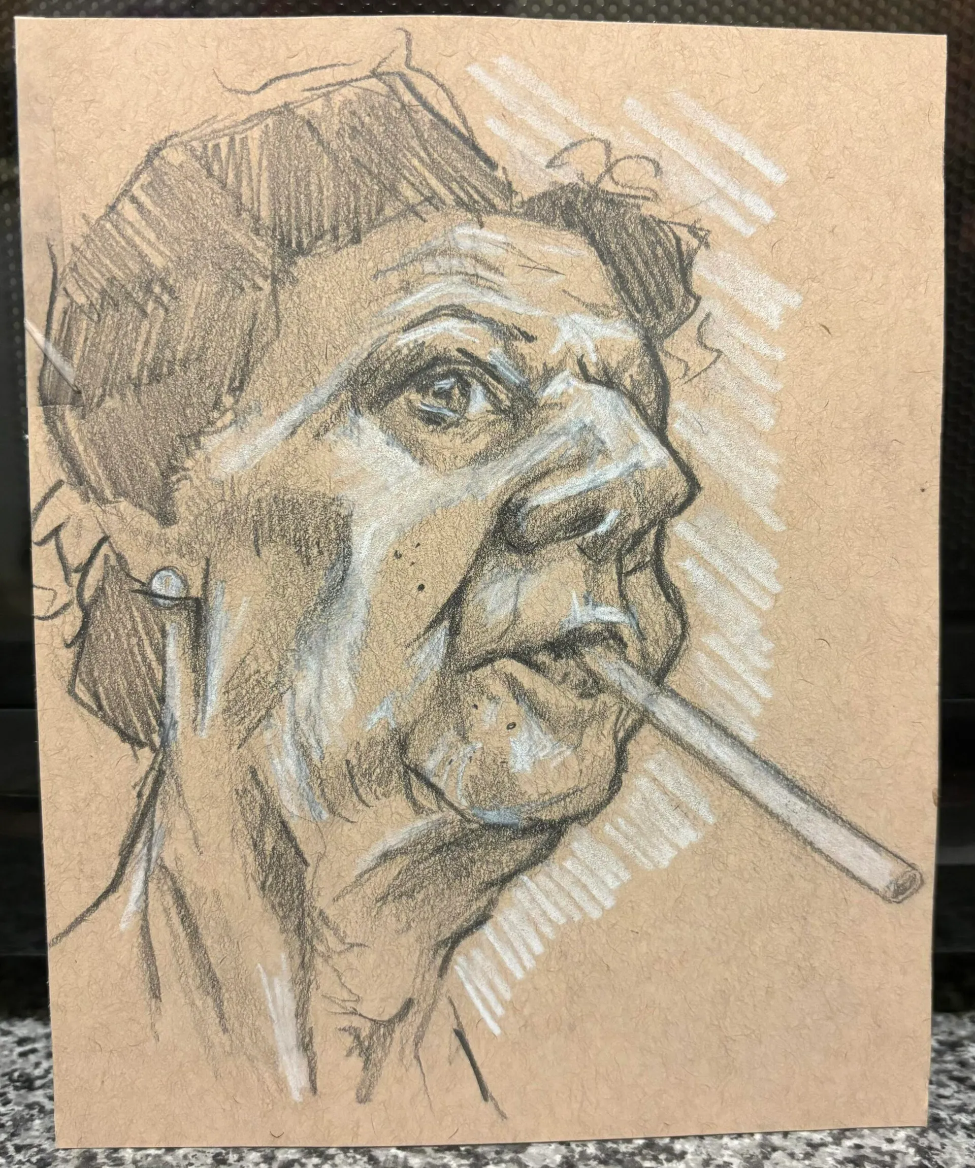 I am primarily drawn to portraiture, as I am fascinated by faces and the ability drawing gives me to capture a personality within a drawing, resulting in most of my drawings featuring people/faces which I believe hold lots of character and personality, which so happen to be older faces more often than not. My approach to drawing is less about exact accuracy when it comes to capturing an image, but instead capturing the essence of the person I am trying to draw, creating a likeness in a way I find to be more authentic.