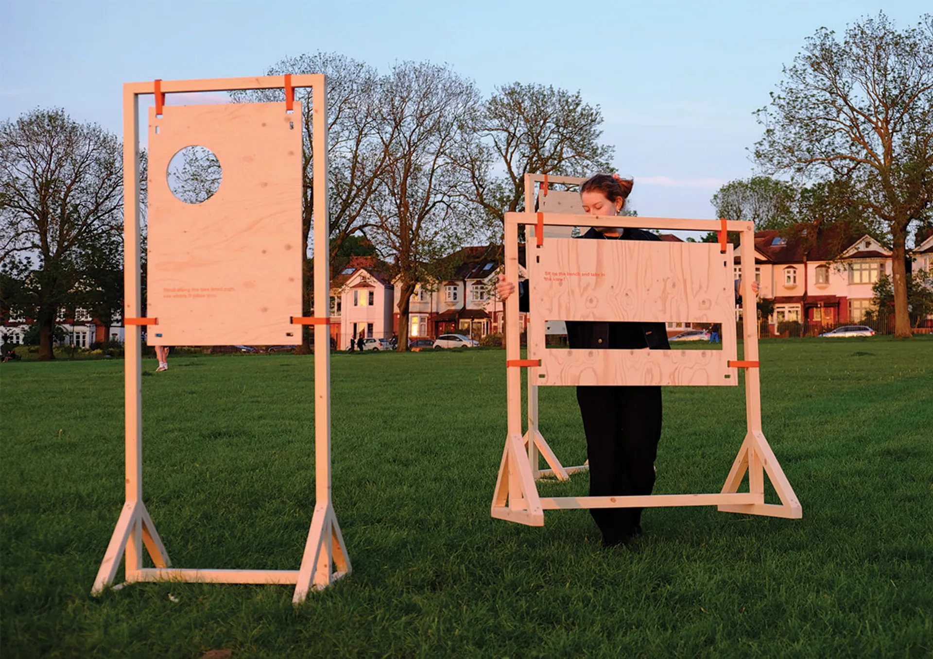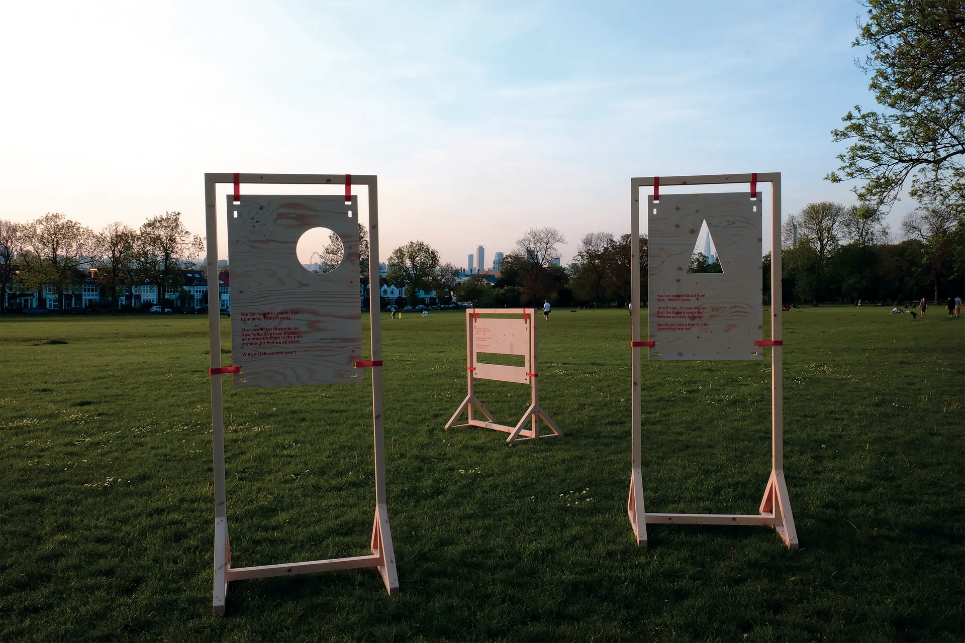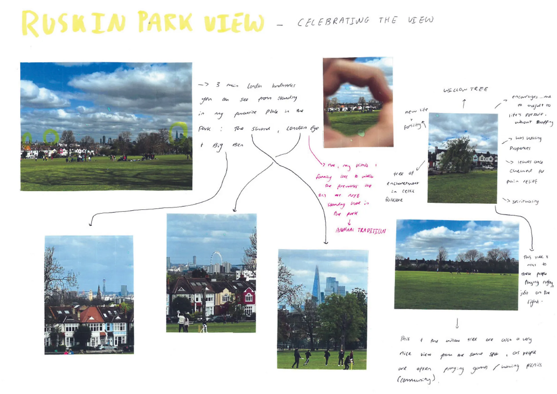 My project is called ‘Take a Leap’. I began my FMP looking at the topic of leap years – I discovered that there is a community of people called leaplings, who are people born on leap day. I began researching themes on my topic – traditions, routines and annual celebrations. which led to me looking at my own community and where I feel like the most is going on – my local park – Ruskin. I began to wonder, what is worth celebrating here? Through lots of research about my area and iterative designs, I landed on the idea of the fascinating view you can see from Ruskin Park: iconic buildings like the Shard, the London Eye, Big Ben, Battersea Power Station etc. Every NYE people in my community go to the park at midnight to watch the fireworks over the London Eye, which is a special annual tradition. I created 3 viewfinders which stand in the park – they allow people to pause and appreciate the views, this can be when they are in the park on a sunny evening or as they are passing through the park on their daily commute to work or school.