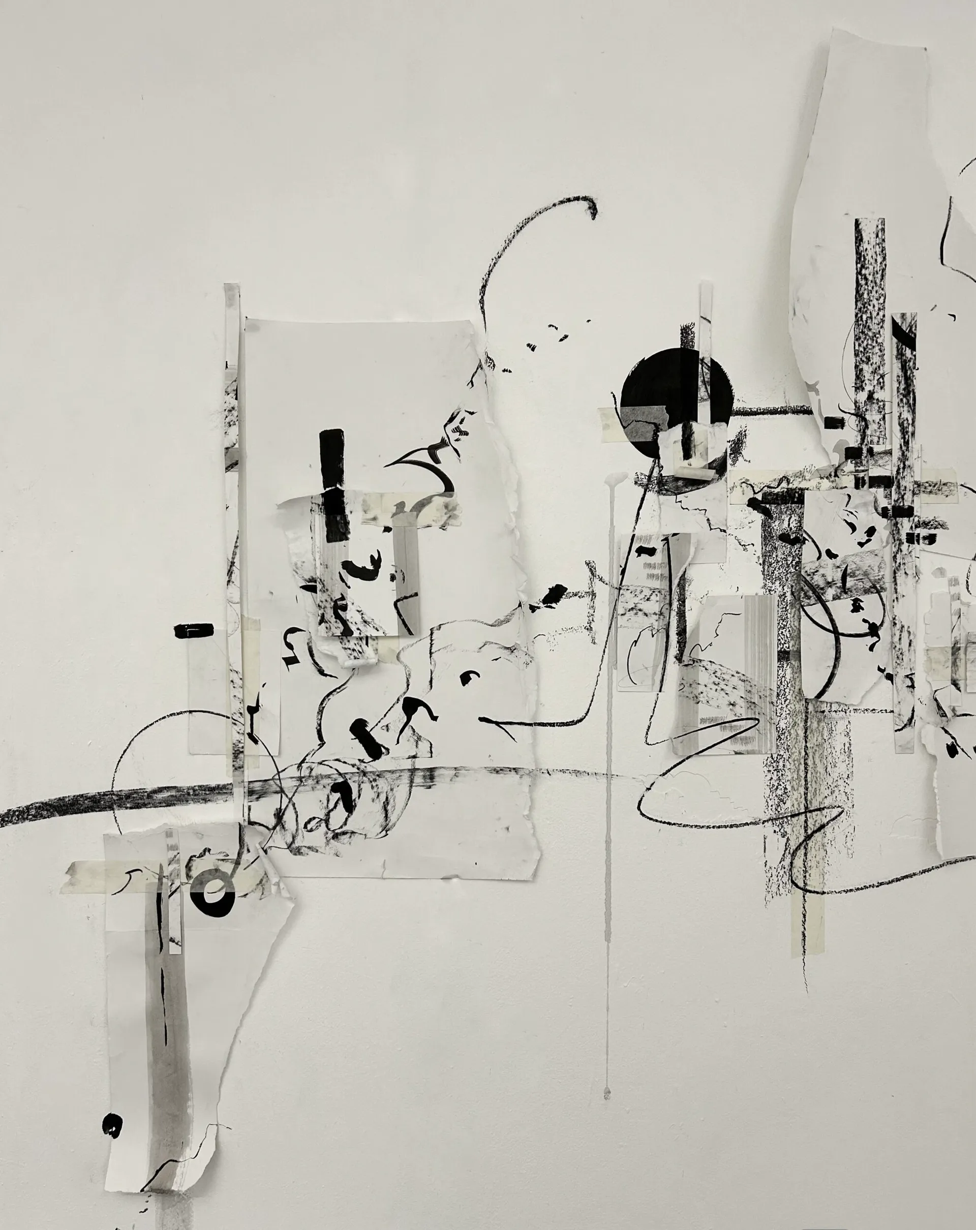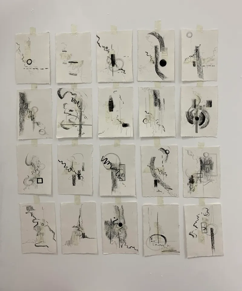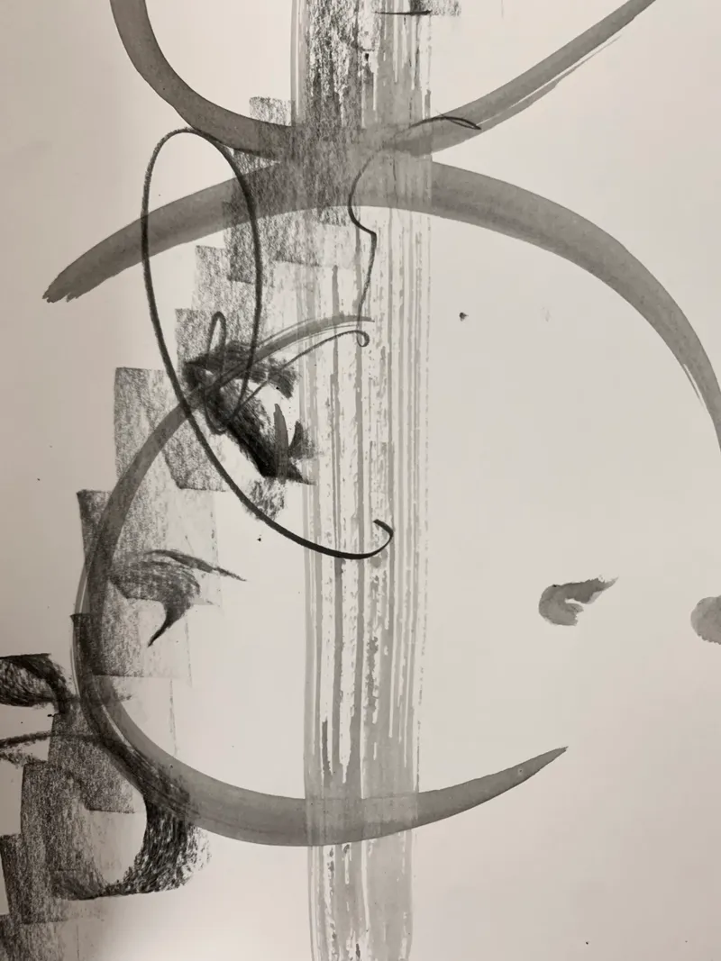 As an interdisciplinary artist my mediums of creating frequently overlap and impact one another. Despite this, the fundamental root of my work is drawing, specifically mark making. My drawing mediums include charcoal, graphite and ink. Additionally I like to experiment with collage within these compositions, exploring the element of layering through themes of transparency and balance. As a musician, I often incorporate sound into my work through exploring the relationship between audio and visual, attempting to capture sounds visually. Composition plays a major role in my work, aesthetically and musically, and I navigate this through improvisation. The marks that I make are driven by spontaneity, creating improvisational motifs that ebb and flow organically. Inspiration for my drawing stems from my environment. Examples of this include, extracting shapes and motifs that I hear from excerpts of jazz or classical music or present time thoughts, feelings and emotions. I tend to let my hand guide me and have confidence within the marks being made. My recent project has involved live improvisational drawing in the form of performance art, utilising the cello as a tool for drawing as opposed to its natural function of producing sound.