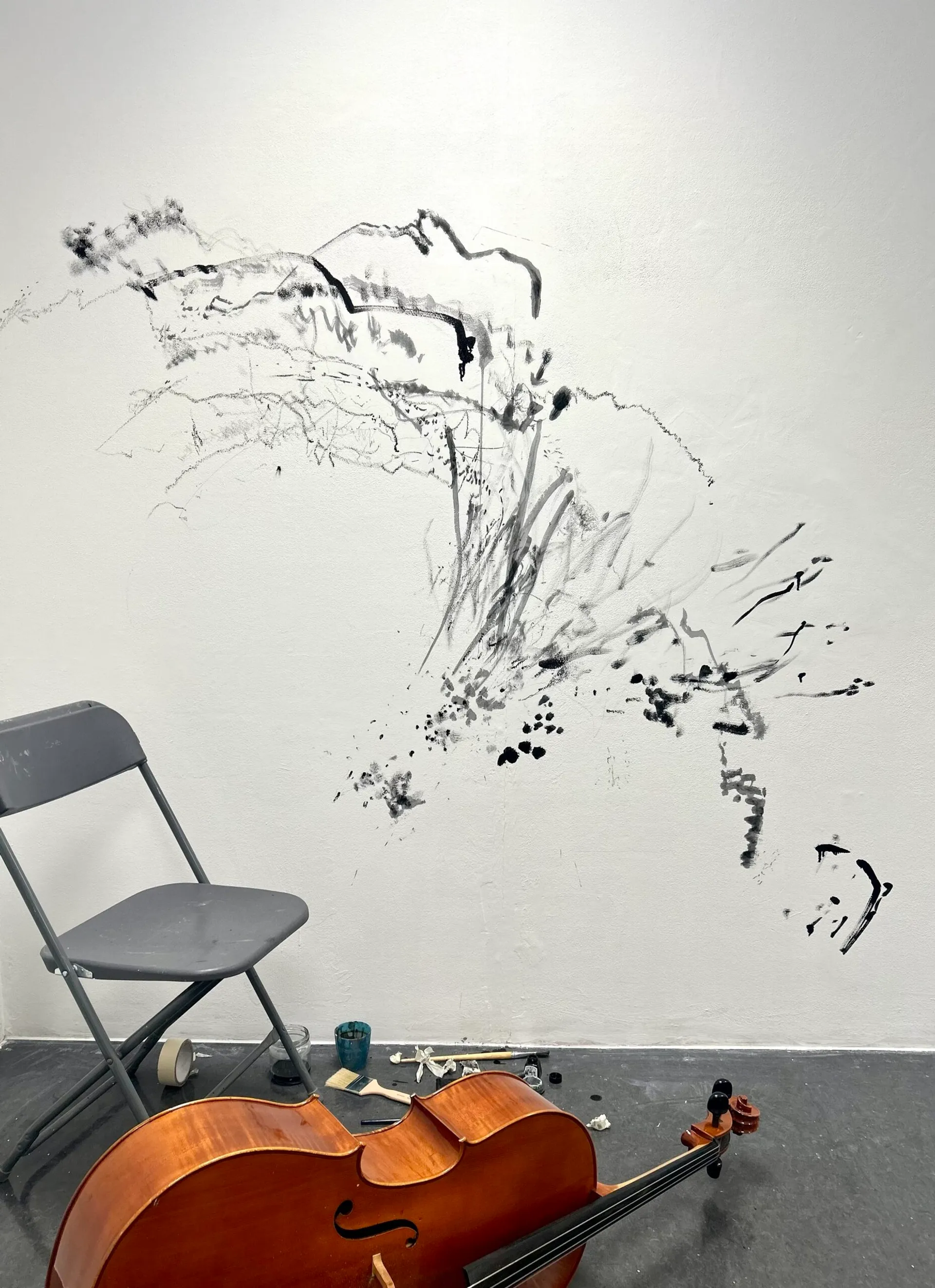 As an interdisciplinary artist my mediums of creating frequently overlap and impact one another. Despite this, the fundamental root of my work is drawing, specifically mark making. My drawing mediums include charcoal, graphite and ink. Additionally I like to experiment with collage within these compositions, exploring the element of layering through themes of transparency and balance. As a musician, I often incorporate sound into my work through exploring the relationship between audio and visual, attempting to capture sounds visually. Composition plays a major role in my work, aesthetically and musically, and I navigate this through improvisation. The marks that I make are driven by spontaneity, creating improvisational motifs that ebb and flow organically. Inspiration for my drawing stems from my environment. Examples of this include, extracting shapes and motifs that I hear from excerpts of jazz or classical music or present time thoughts, feelings and emotions. I tend to let my hand guide me and have confidence within the marks being made. My recent project has involved live improvisational drawing in the form of performance art, utilising the cello as a tool for drawing as opposed to its natural function of producing sound.