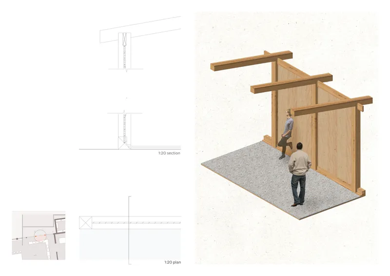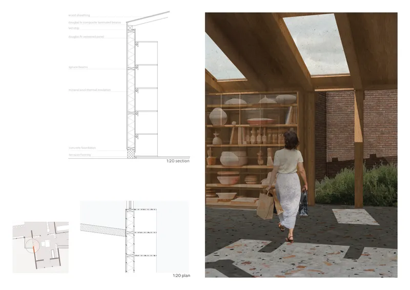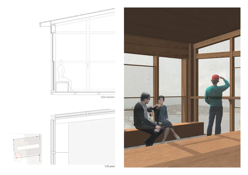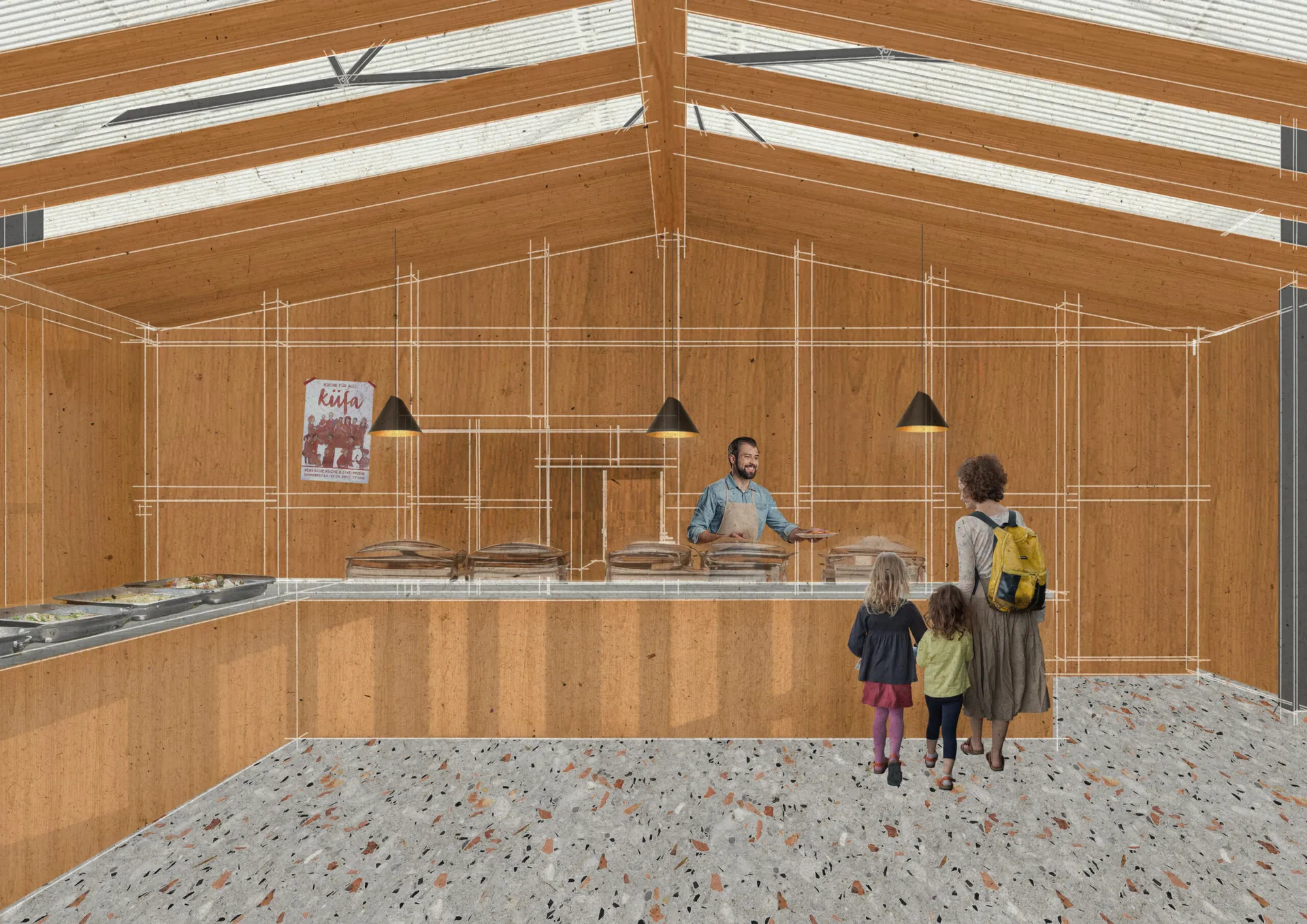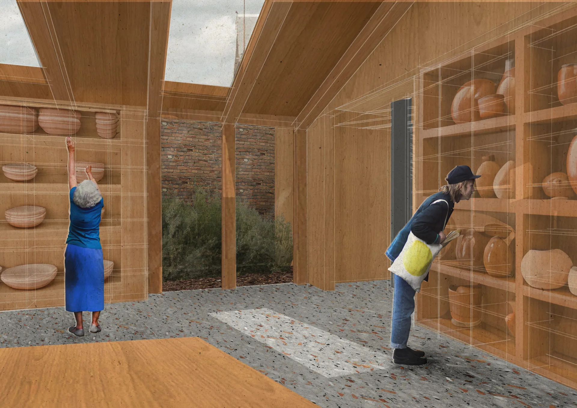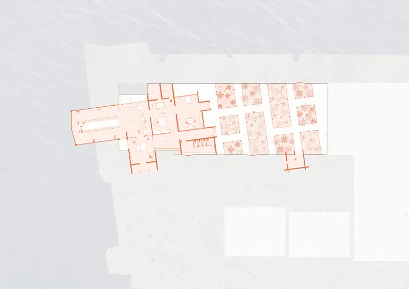 To remedy this social divide, the proposal aims to introduce the practice of commensality in Chatham as an adaptive reuse of a derelict workshop building within the historic dockyards. For millennia, the act of sharing a meal has played a vital role in societies for expressing ideas and strengthening communal bonds. The community kitchen will provide opportunities for individuals and families of all backgrounds to gather around cooking and eating. A large greenhouse grounds the proposal in self-sufficiency, allowing the cultivation of fresh produce and horticultural education opportunities. The preservation library acts as both a storage solution for preserving food, as well as a catalogue reading material surrounding culinary heritage, climate action, and cultivation techniques. In the kitchen, a single, central island unites cooks and diners together, encouraging socialization and fostering a stronger community bond. The kitchen also functions as a venue for cooking and baking classes for children attending the numerous primary and secondary schools in the area. The design emphasizes key views to the dockyards and the adjacent River Medway, reinforcing Chatham’s reconnection with nature, heritage, and history.