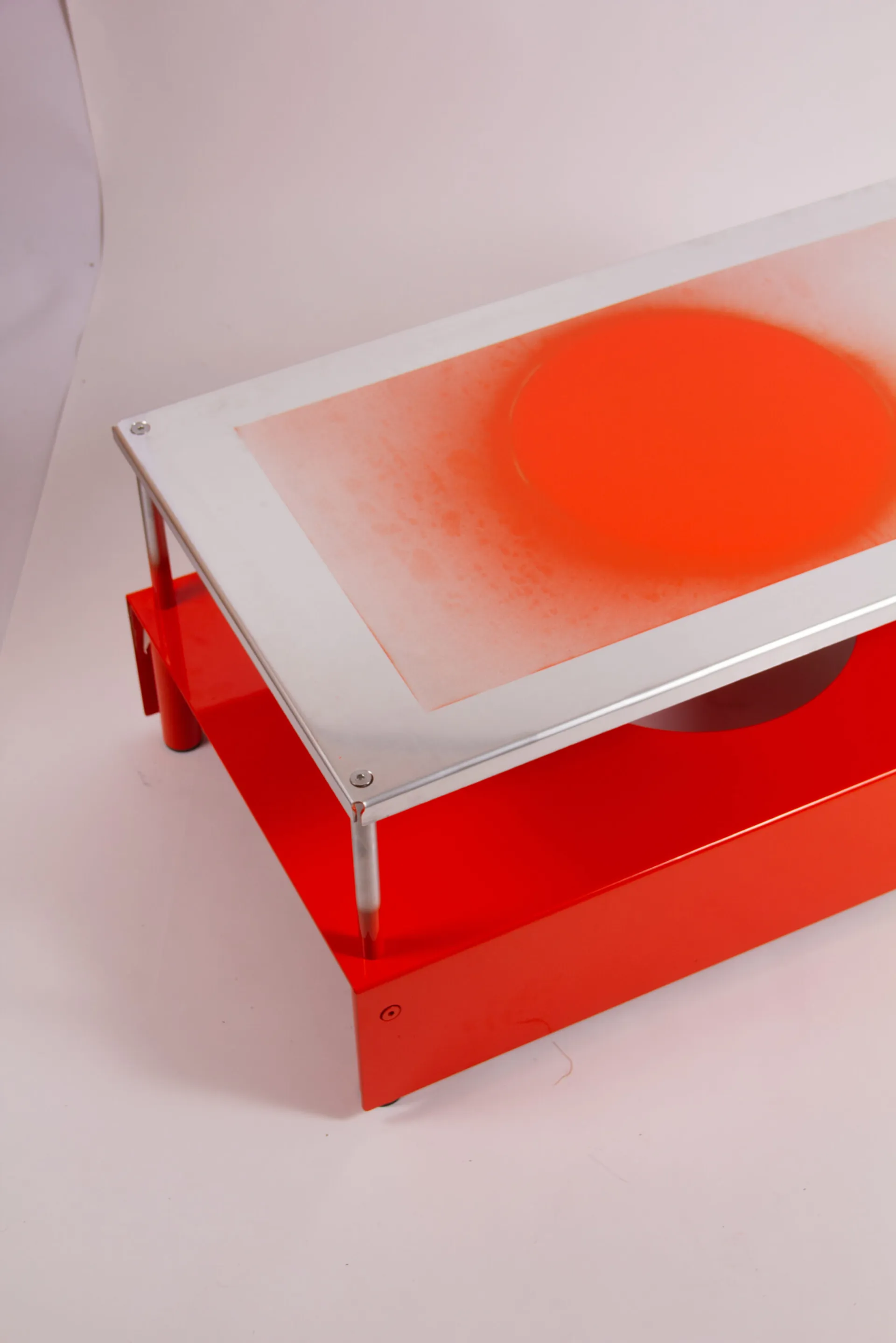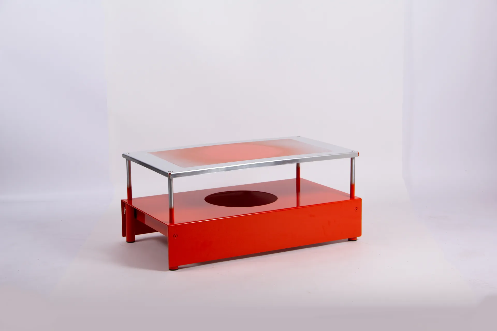 What if we took a finishing process and started with it? Projecting gradients began as a material exploration into metal’s relationship to powder coating finishes. Restrictive metal bodies are used to project, direct or limit the amount of powder hitting another surface. A new language of objects emerges when objects are designed around and for these techniques. The Stencil table, is actually just that: a large stencil turned coffee table. The table is assembled once for powder coating and once for its final assembly, allowing for the limitation and projection of powder coating. Stencil exists as a legible first step for a potential collection of objects based off these principles.