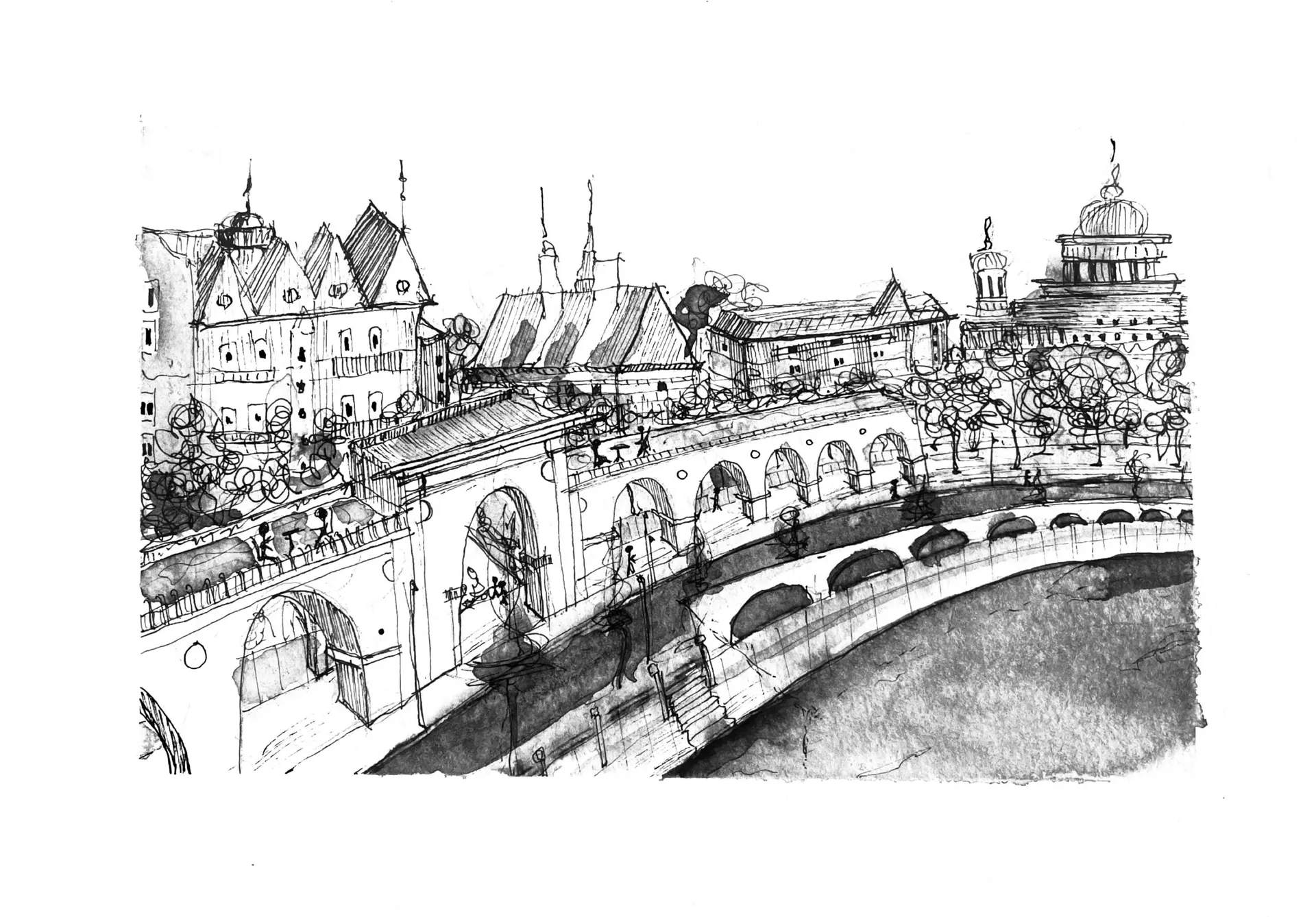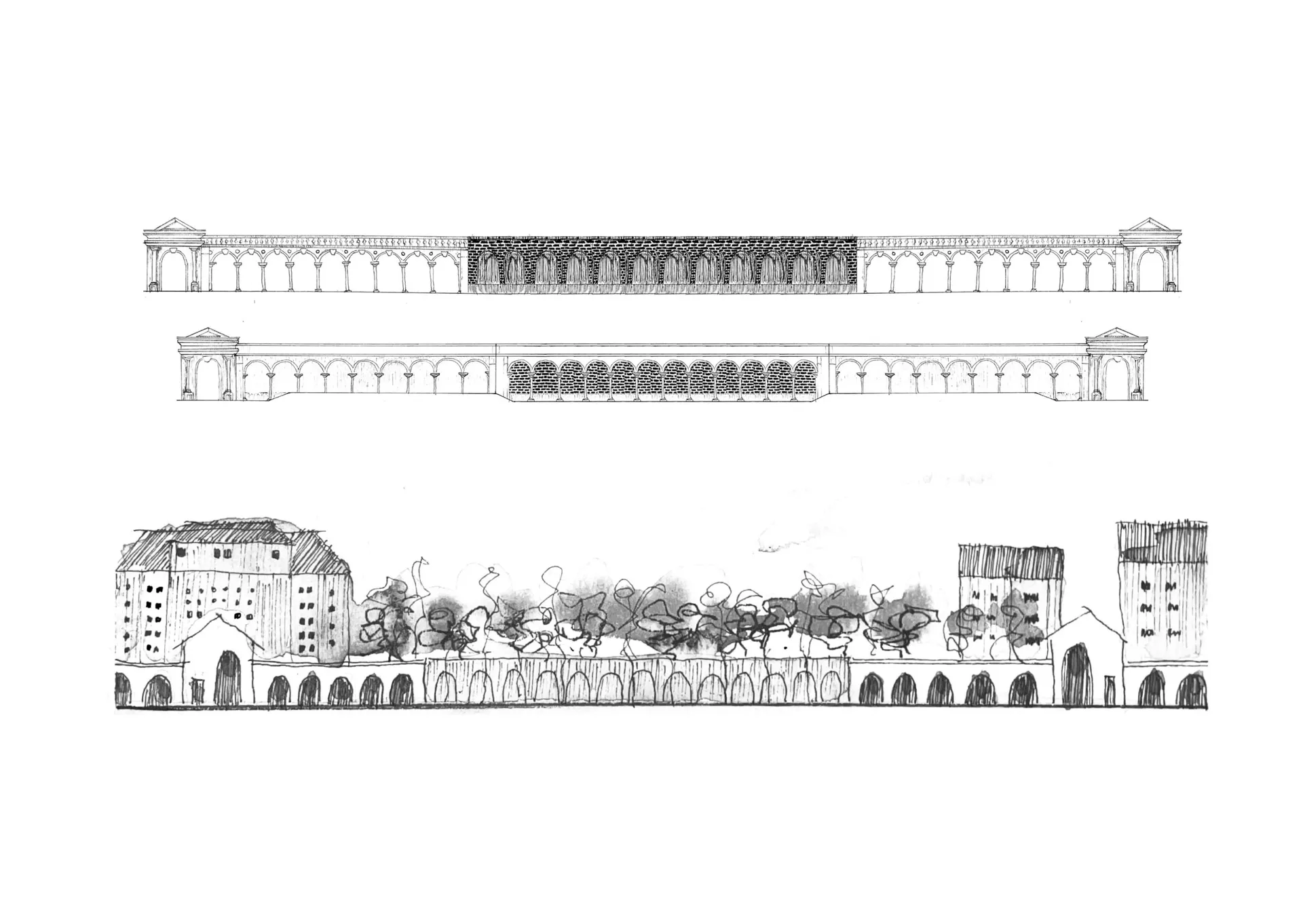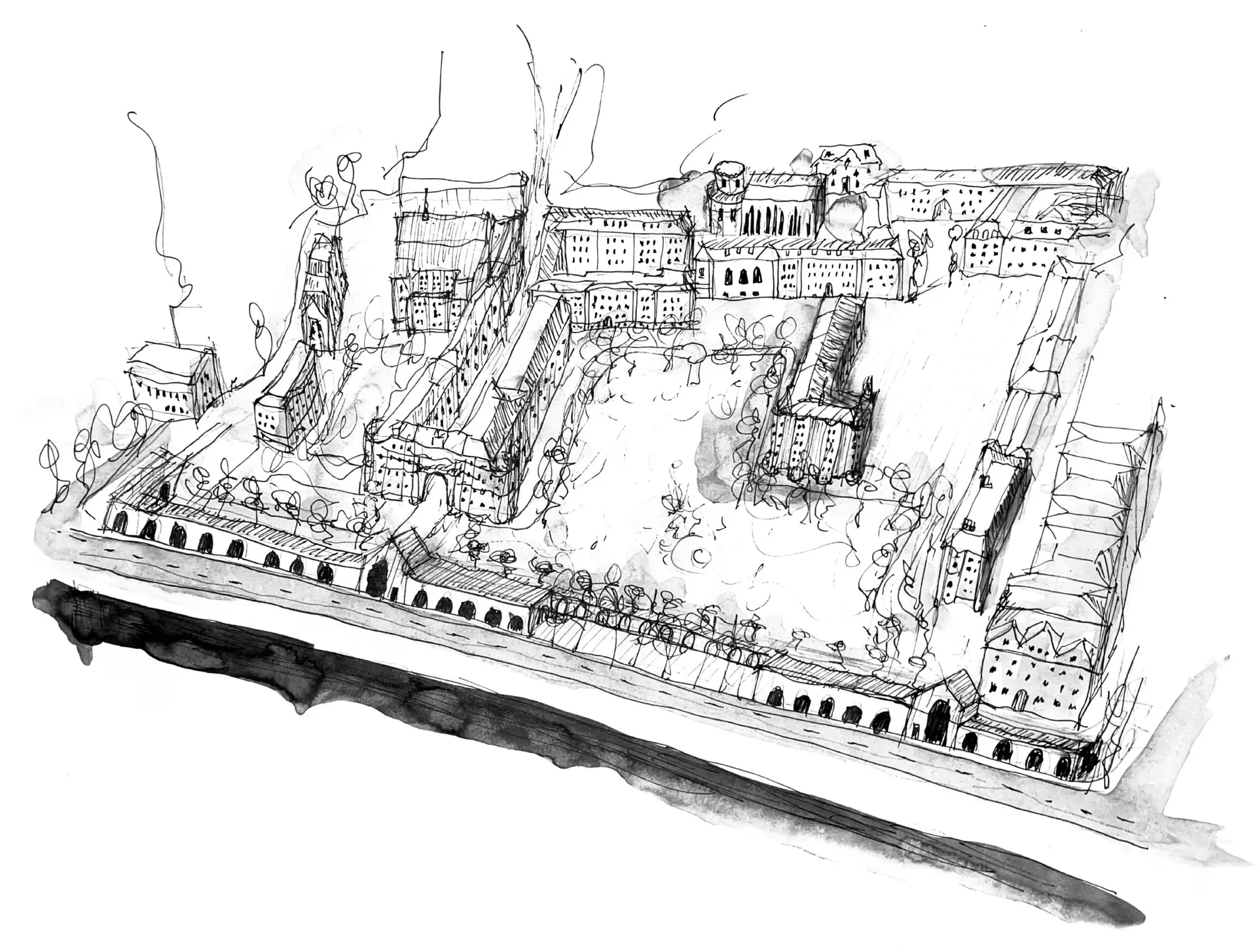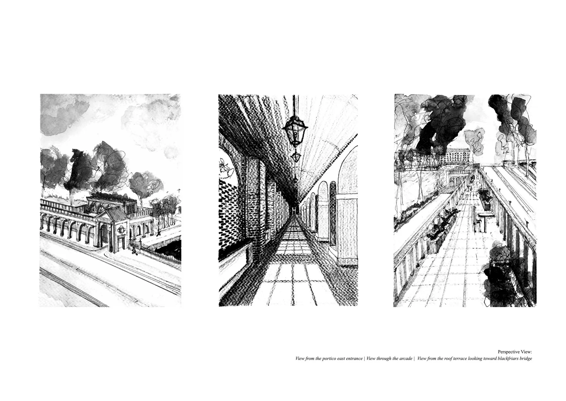The project displayed explores “Redefining the boundary between public and private spaces”, through scenographic sketching. Designing socially impactful architecture that utilises sustainable thinking to enhance our living and working environment.