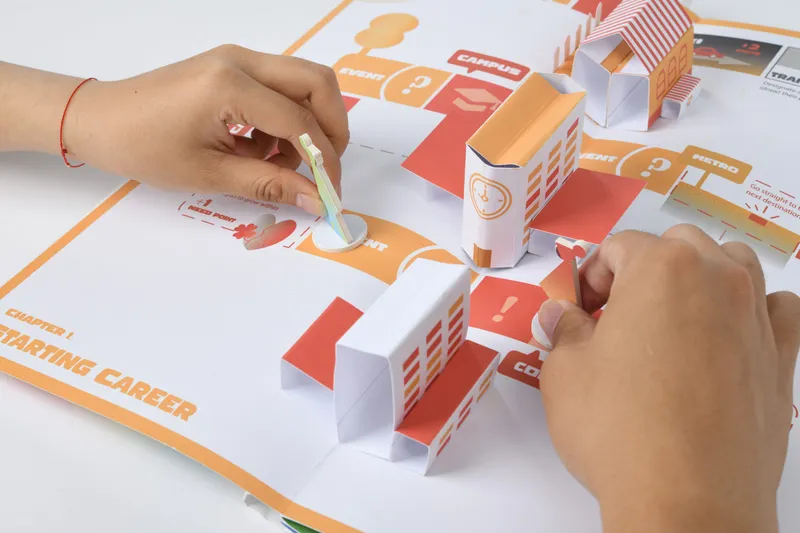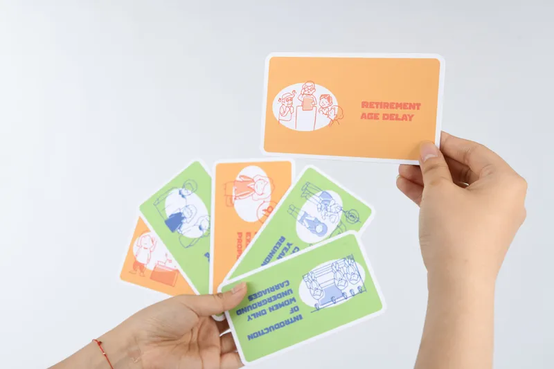 Mulan is a multiplayer strategy board game that focuses on the experiences and personal growth of women in the workplace in China. The game takes the form of a pop-up book with pages illustrating the challenges women may encounter in society. Using news, policies, and interviews, the game helps players understand and remember events that impact the personal development of women in China. Players make strategic decisions from a first-person perspective. The game’s design and presentation are gender-neutral, aiming to enhance player immersion and deepen understanding of professional women among diverse groups of people.
