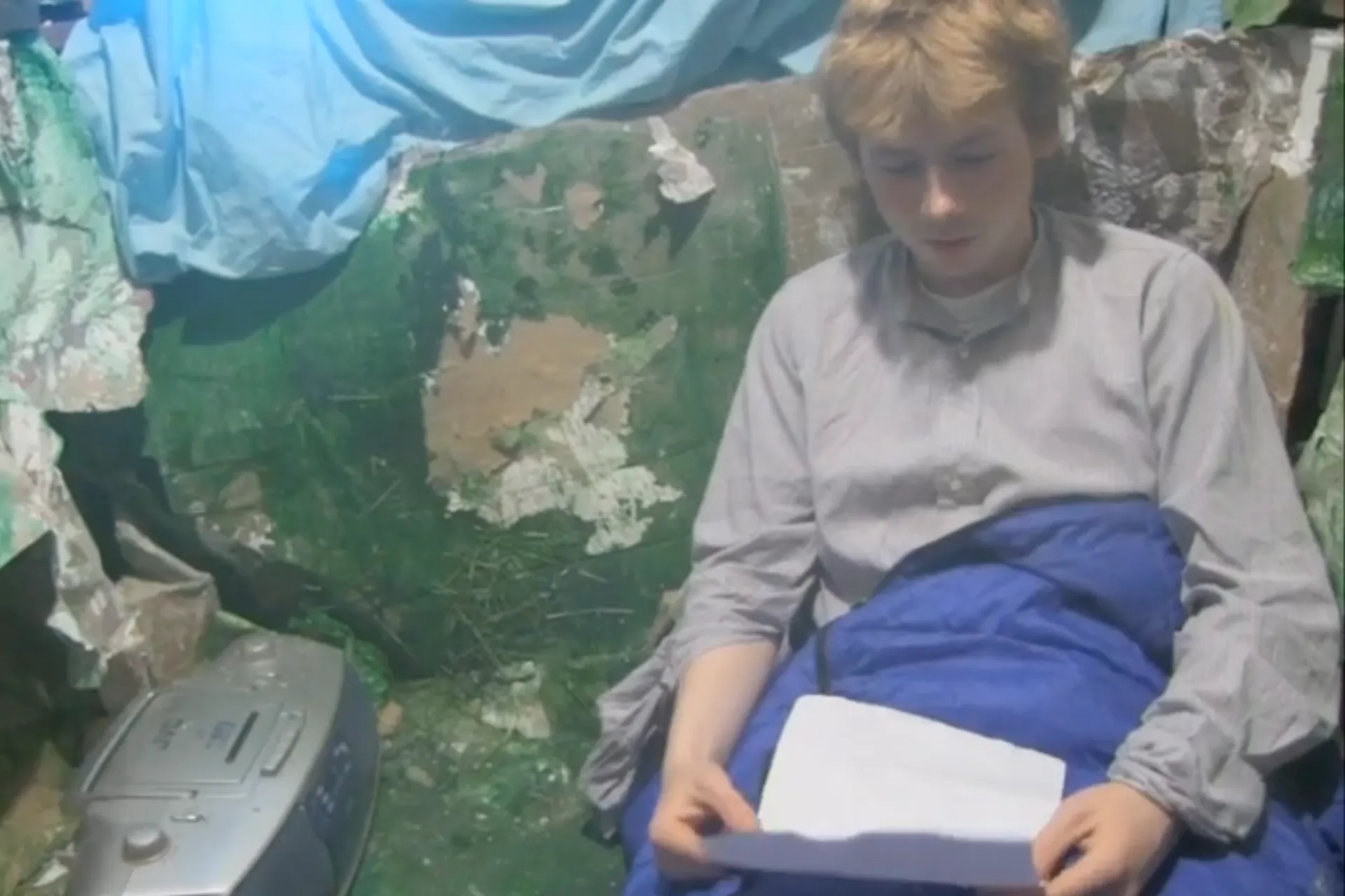 I have made a film about attempting to make a film, including scenes about auditioning, acting, rehearsing whilst the sets and facade of the narrative is falling apart around the character. Using materials from the film and some of the props , swell as some new props made particularly for the instillation I built a campsite space that the film is played in.
