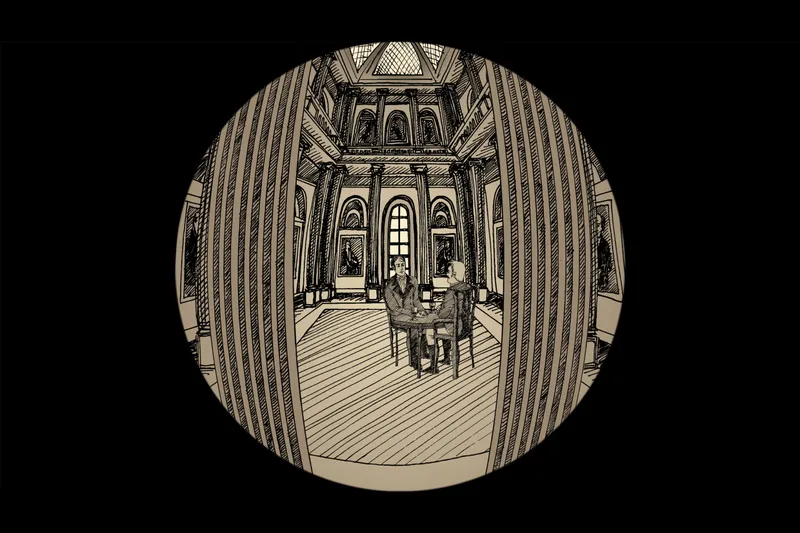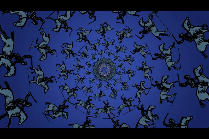 The story is depicted using phenakistoscopes for their hypnotic, cyclical imagery.