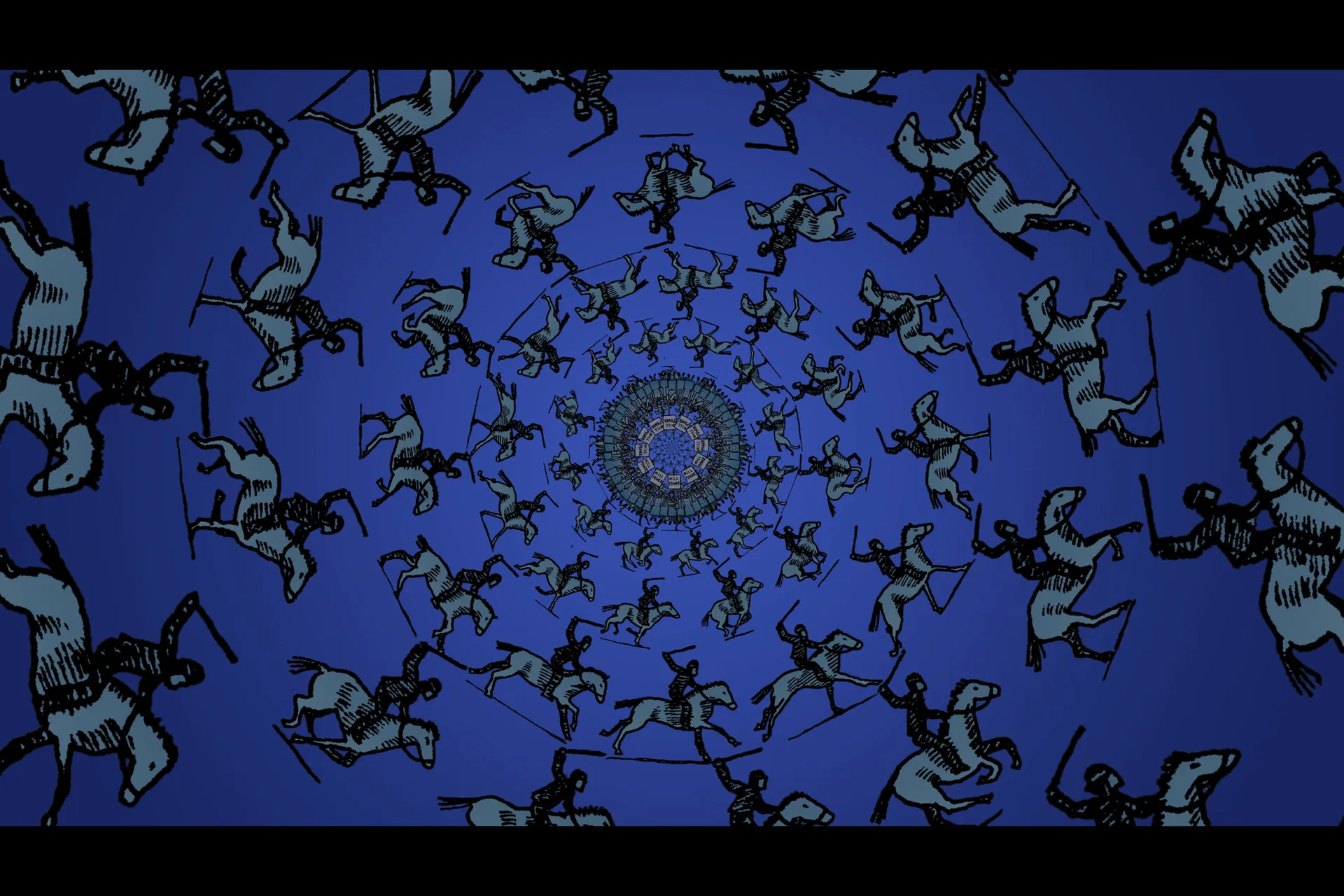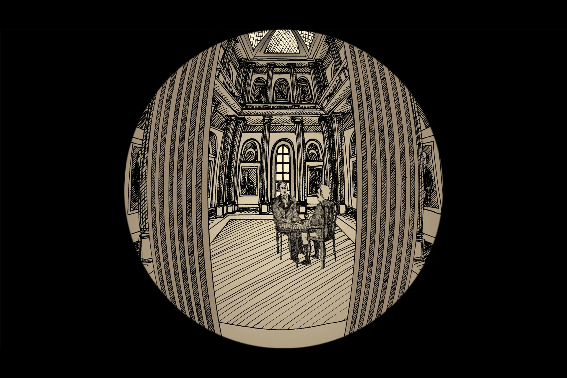The story is depicted using phenakistoscopes for their hypnotic, cyclical imagery.