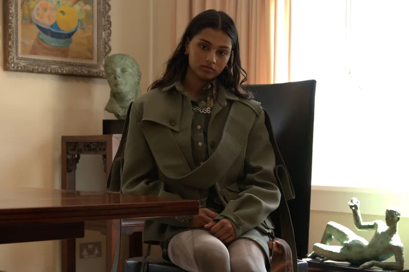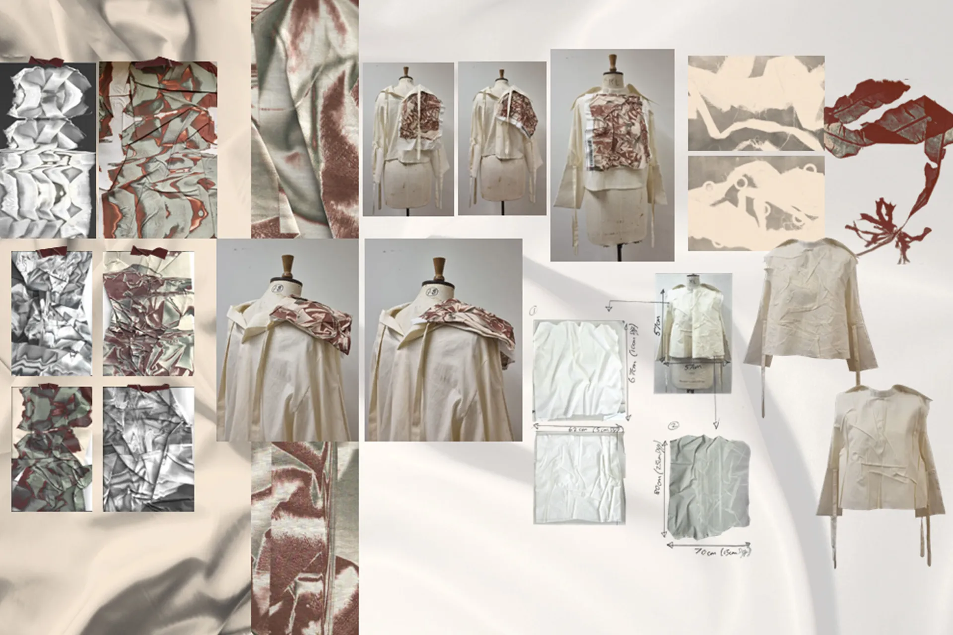 A contemporary interpretation of military uniforms formed through the referencing of authentic uniforms, camouflage and media that explores themes of military, focusing on the Polish show created in 1966 titled Four Tank-Men and a Dog. The collection comprises of traditional and contrastingly exaggerated elements including colour variations in print and military details that have been manipulated across the body. During the development process menswear garment blocks and references have been transformed into garments designed for women. Traditional dress practice within military is both, emphasized and challenged through textile development; a range of methods are displayed to create intentional creases subverting the clean, tidy appearance whilst quilting is utilised to present original referenced functional design. Through continuous drape and placement exploration, the proportions of features are well considered for an effective outcome where potential for product and new elements of interest are combined.