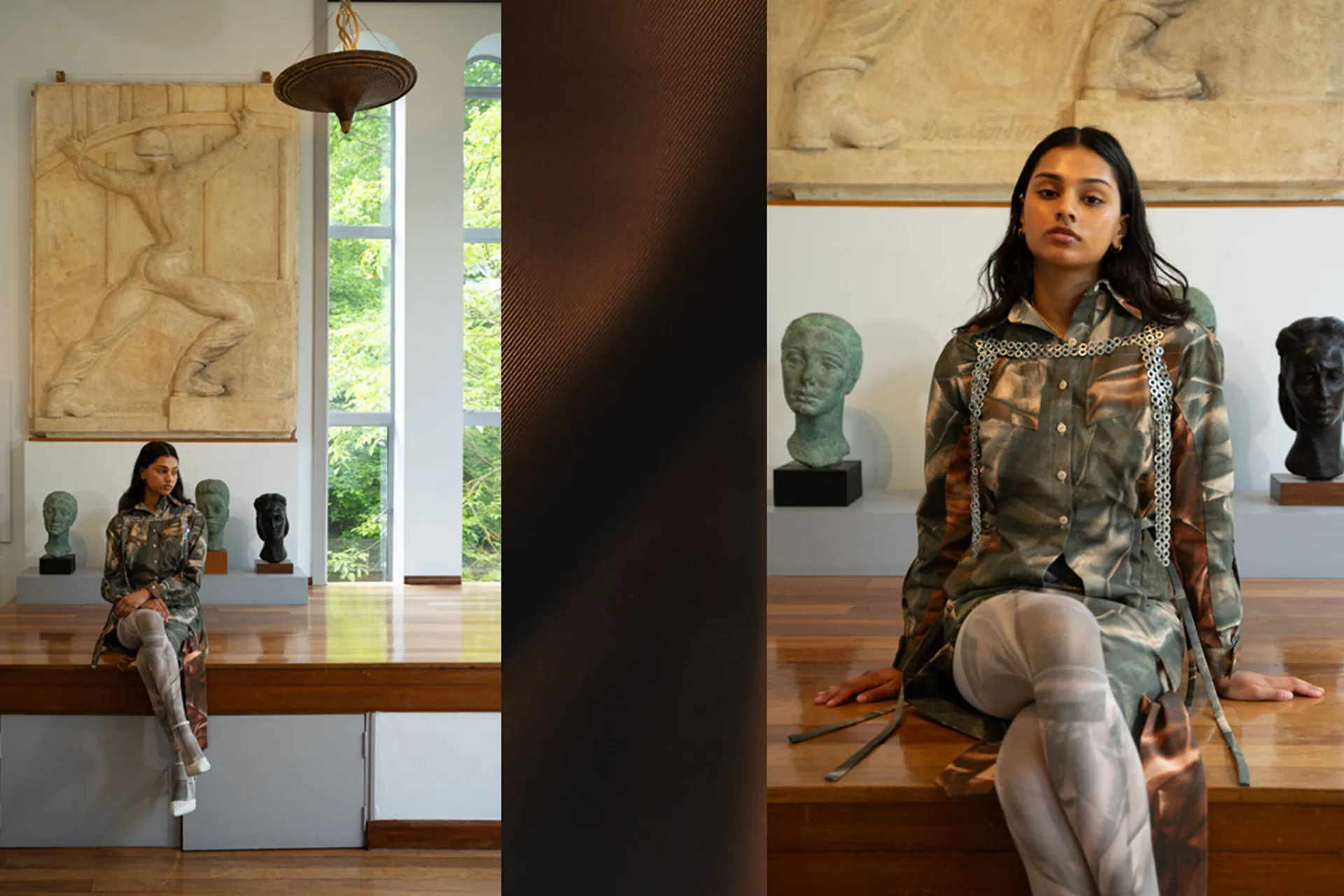 A contemporary interpretation of military uniforms formed through the referencing of authentic uniforms, camouflage and media that explores themes of military, focusing on the Polish show created in 1966 titled Four Tank-Men and a Dog. The collection comprises of traditional and contrastingly exaggerated elements including colour variations in print and military details that have been manipulated across the body. During the development process menswear garment blocks and references have been transformed into garments designed for women. Traditional dress practice within military is both, emphasized and challenged through textile development; a range of methods are displayed to create intentional creases subverting the clean, tidy appearance whilst quilting is utilised to present original referenced functional design. Through continuous drape and placement exploration, the proportions of features are well considered for an effective outcome where potential for product and new elements of interest are combined.