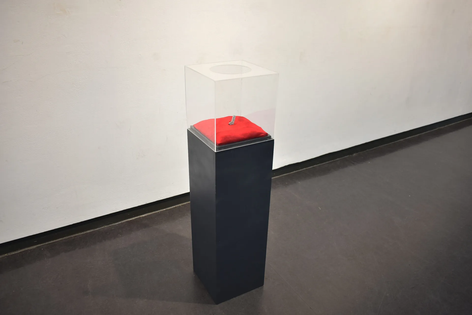 To pair with the narrative, I’ve staged an attempted robbery of a museum’s pewter sock. The museum display case has a lasered out circle to show the attempt, but the sock still lays on its velvet pillow, revealing that the culprit has failed this time in causing the disappearance of yet another sock.