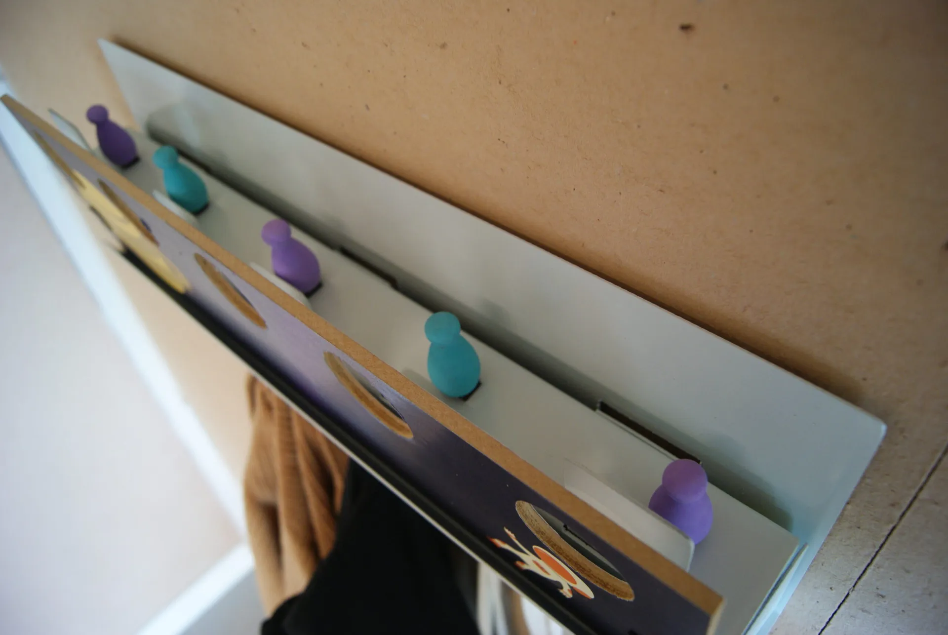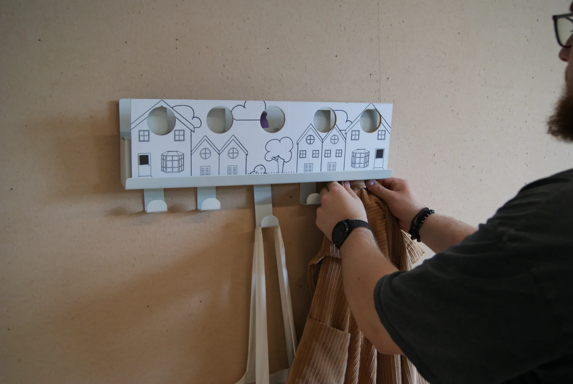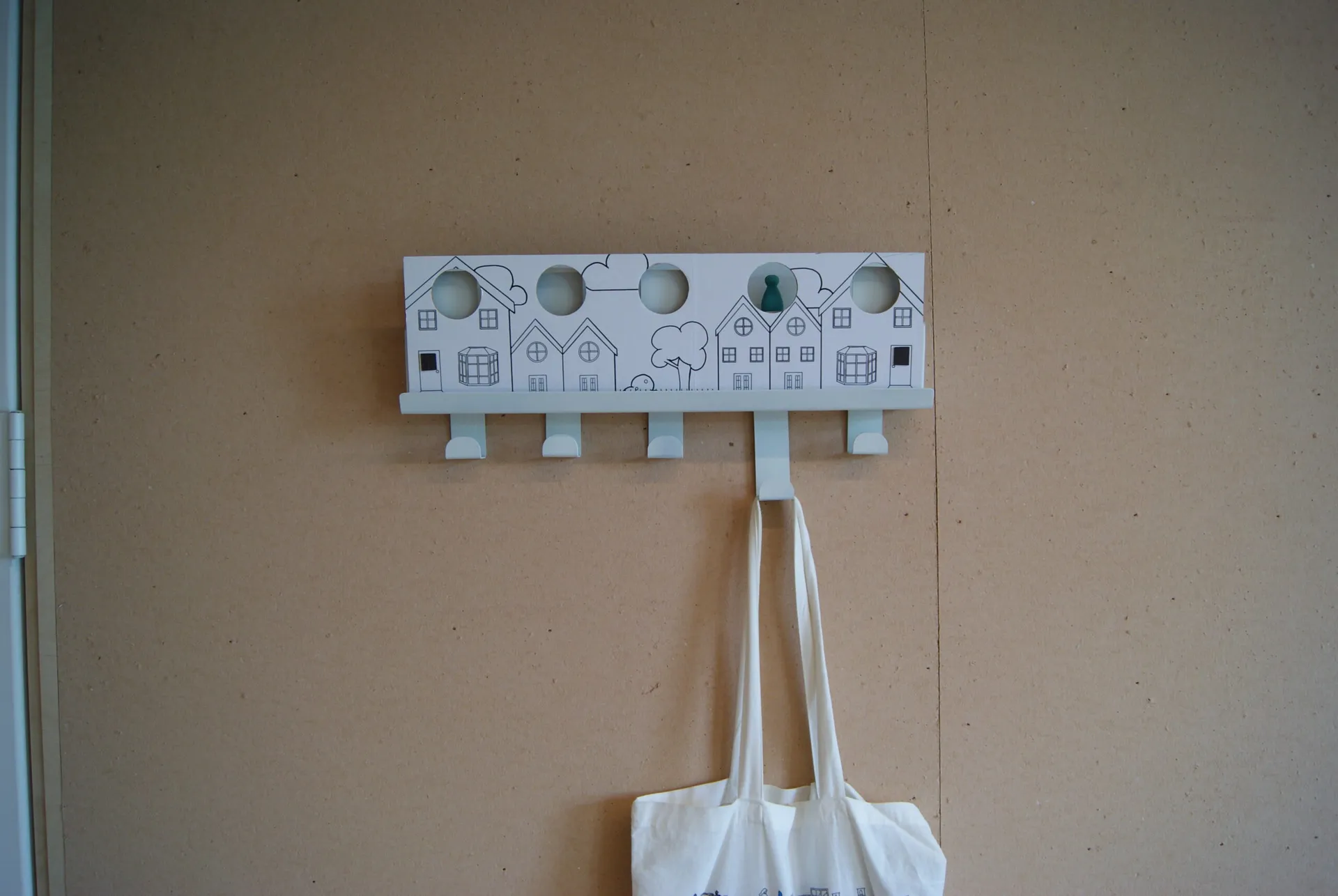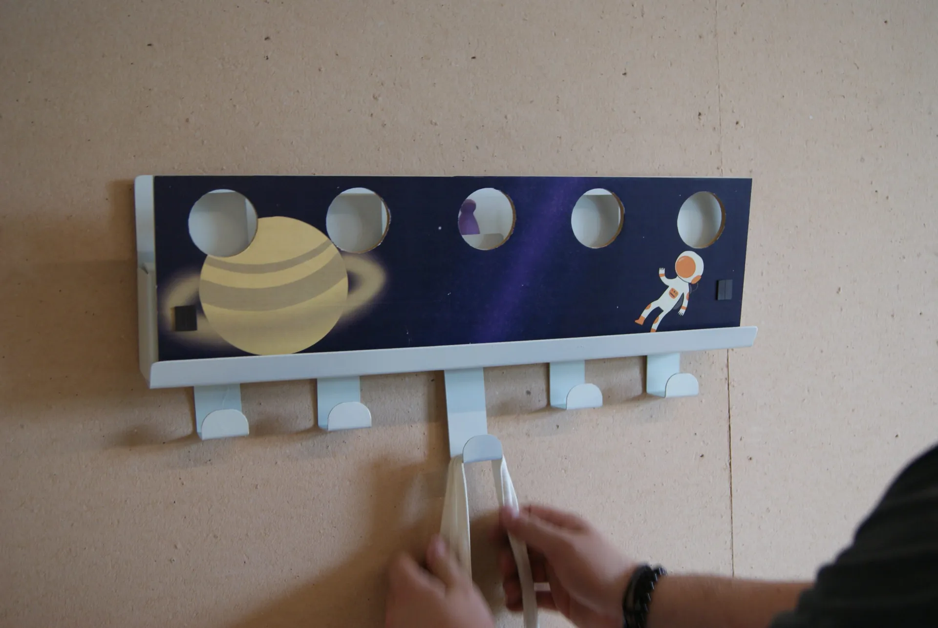 A children’s clothing hook that helps to encourage them to clean and hang up their clothes by having a peek ‘a’ boo aspect to it.