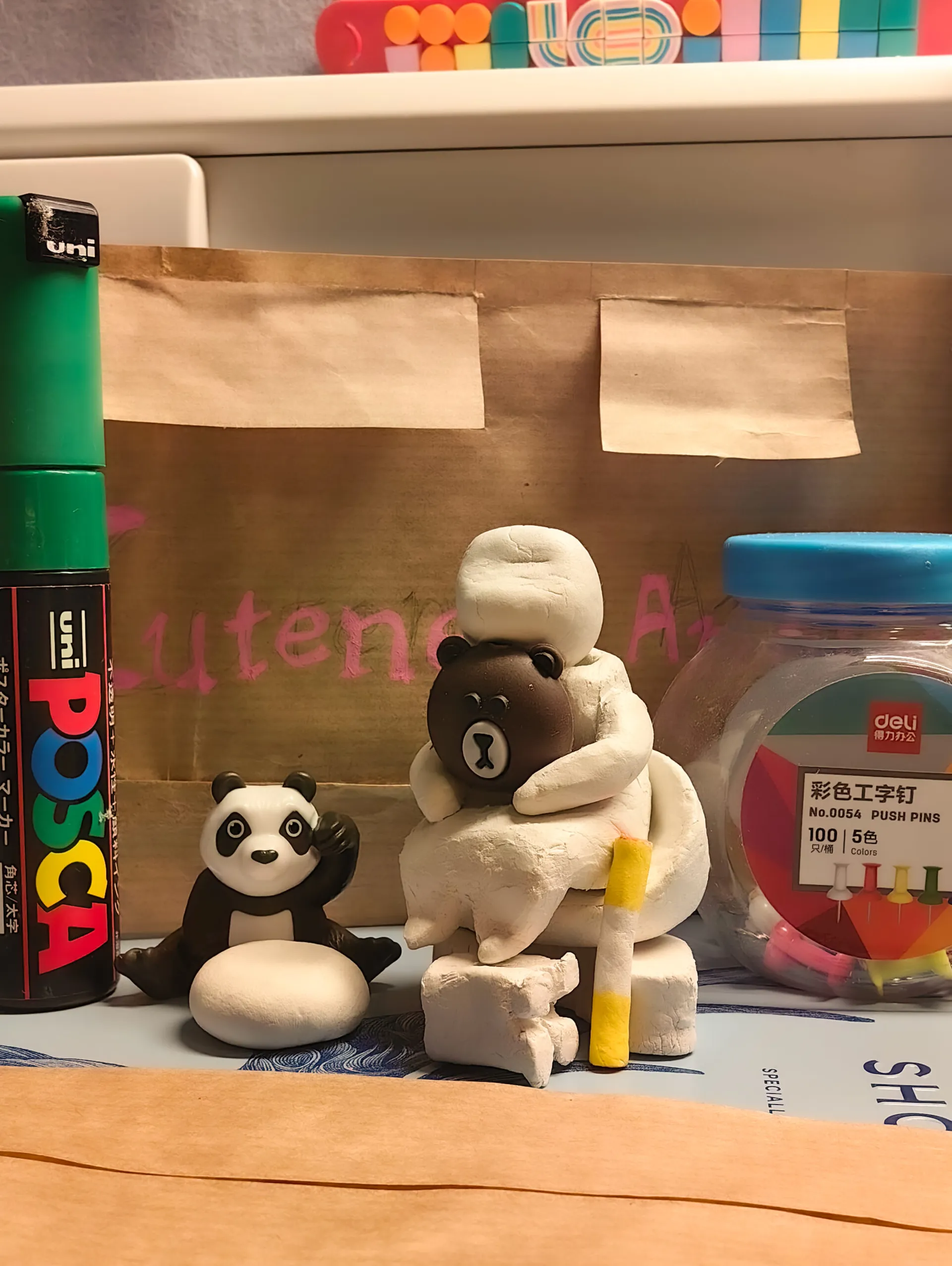 This series of works consist of one video, 3 motion graphics, small and medium-sized sculptures made of stone plastic clay. The video conveys the concept of “sustainability” through interesting narratives. In the video, the behaviours of the imaginary alien child “making his friends with rubbish” to the human designer “recreate these works” that means “passing” the positive spirit. In addition, motion graphics and clay sculptures are characters and derivational pattern of the video. In general, I would like the viewers to subjectively perceive the power of the different presentations and functions brought from cuteness.
