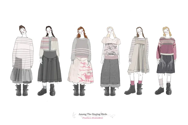 Born and raised in West Sussex, I am inspired by the rich folklore of the region and in turn fairytales, using fashion to bring to life the lessons of these stories. Having grown up in the countryside, I have found great delight in using my imagination and reading books to escape and to learn. I often use stories to influence my work and am interested in how fashion can create a narrative and open portals to other worlds. Knitwear and print allow me to emphasise these narratives and play around with how clothes and the wearer are perceived.