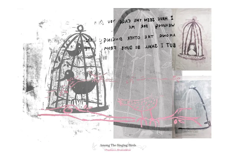 I have used a mixture of woven and knit, some new and deadstock, to create a textural collection that immerses the wearer into this fairytale world. My work features hand drawn one off monoprints, with the aim of emphasising this narrative and highlighting the ephemeral nature of folklore and the act of handing down stories.