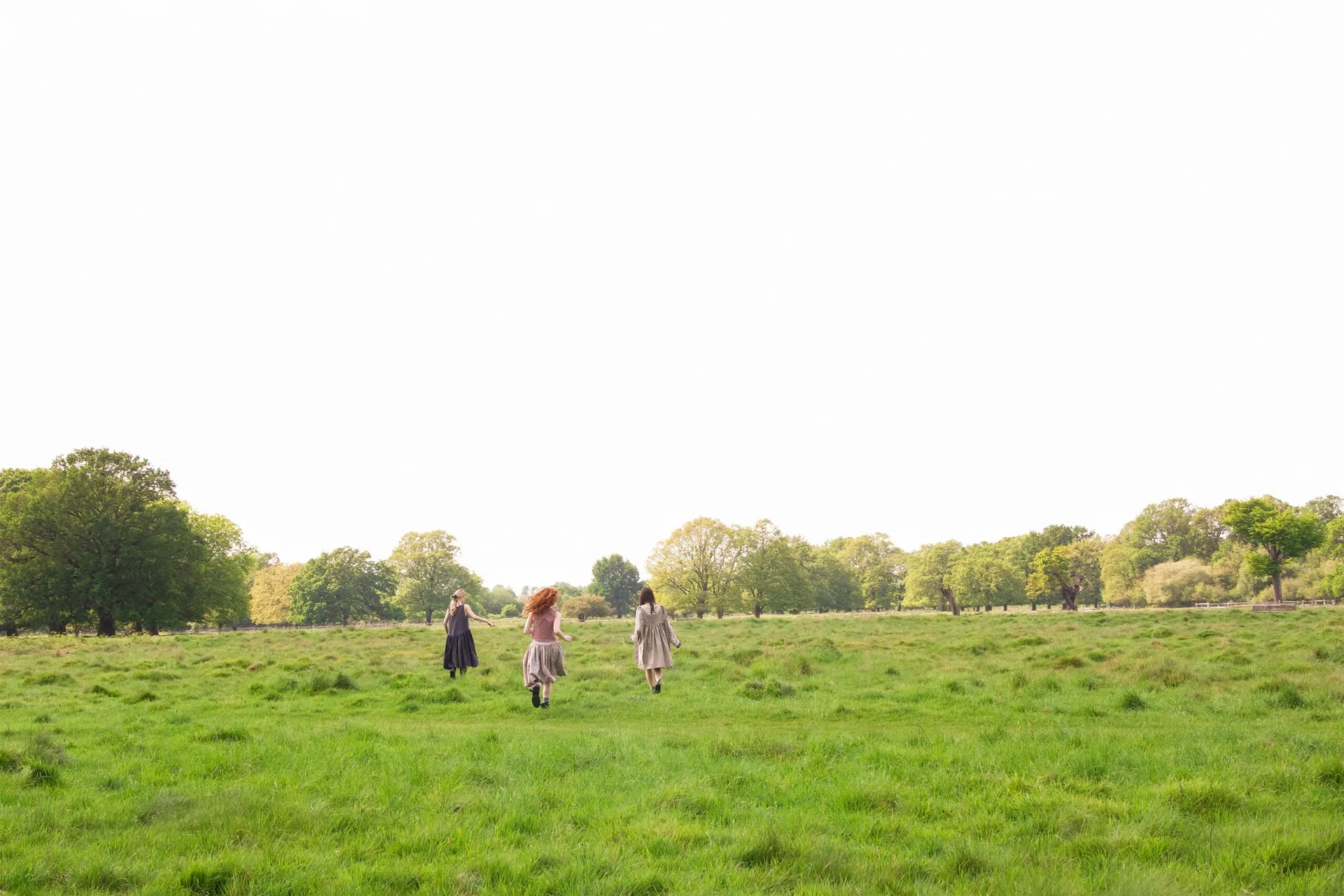 The photoshoot was a crucial element in bringing this collection to life, not only capturing the essence of Angela Carter’s storytelling but also weaving its own unique narrative. I invited friends, women who hold significant places in my life, to model my work. This allowed me to highlight the intricate layers of the collection – from woven fabrics to knits and prints – each element building upon the other to create a bright and tangible fantasy. The result was a rich tapestry of textures and colours that tell a story on their own.