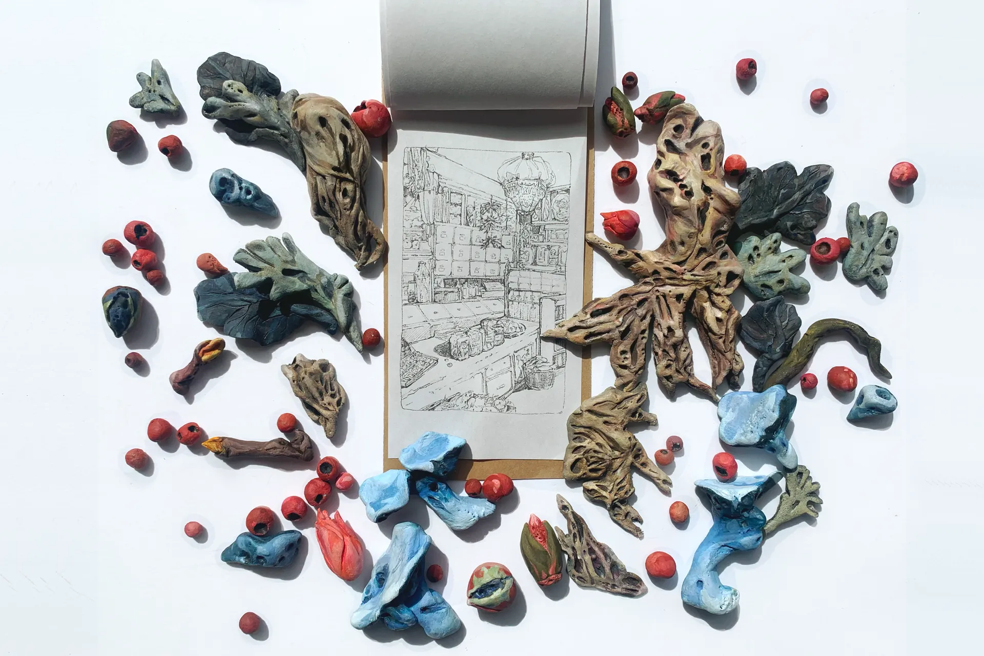 Rein Lee Banks is an upcoming illustrator, specialising in visual storytelling, Book arts and graphic design. Feeling comforted by abusers, worshipping monsters, and wanting to remember your nightmares as something beautiful, ‘My Taxidermy Angel’ paints a beautiful, bittersweet story that explores the complicated feelings that accompany us when trying to heal from our past.