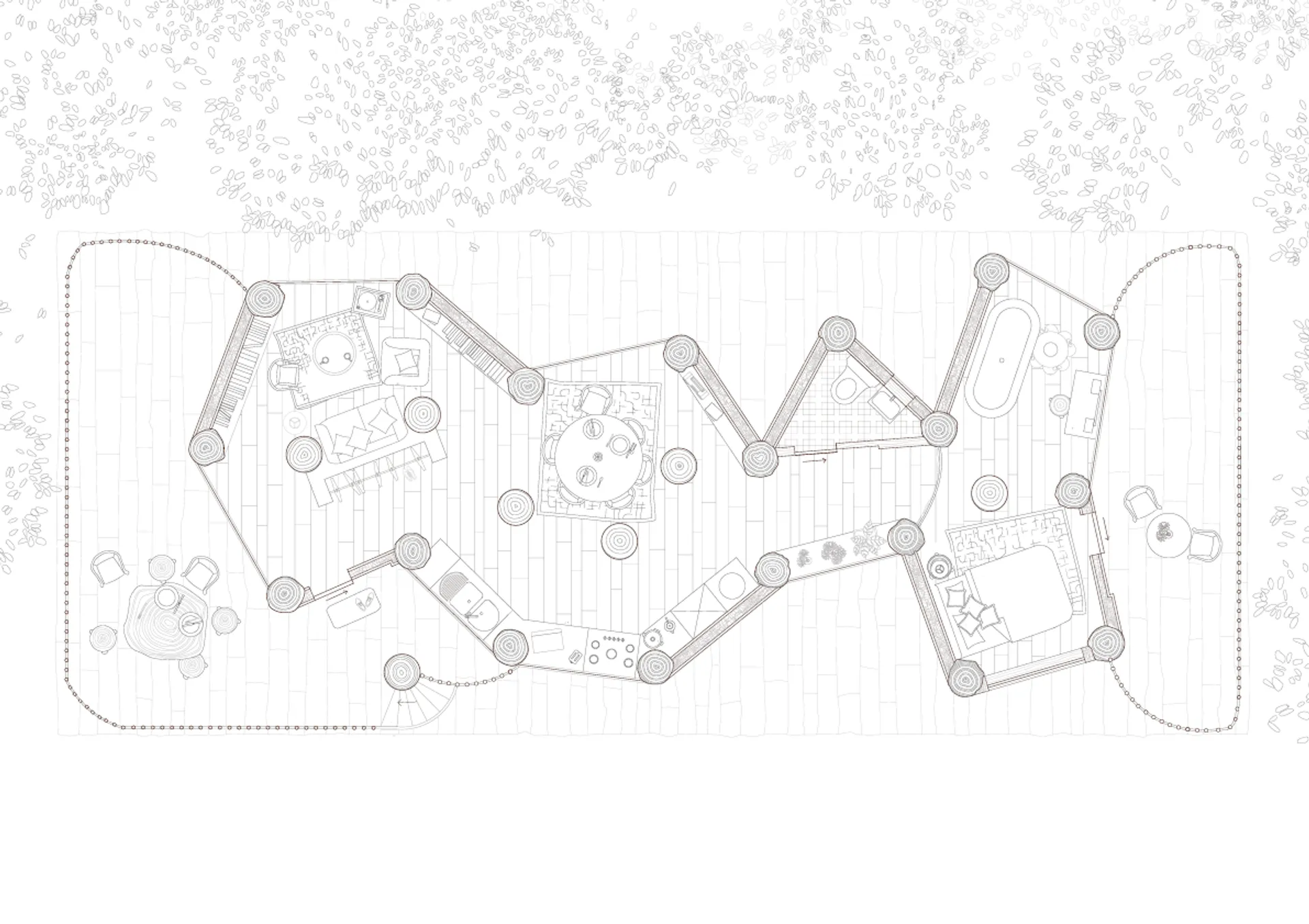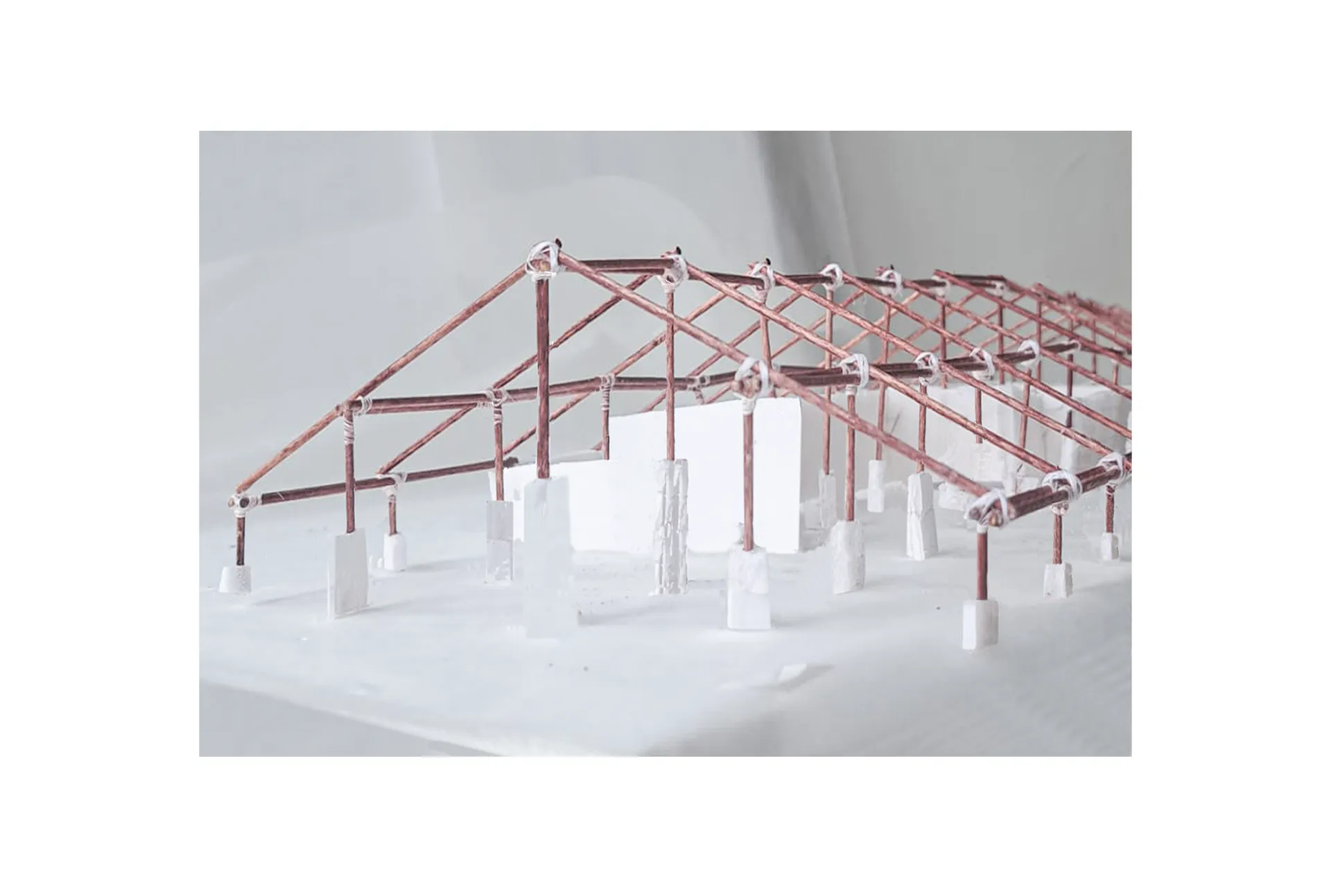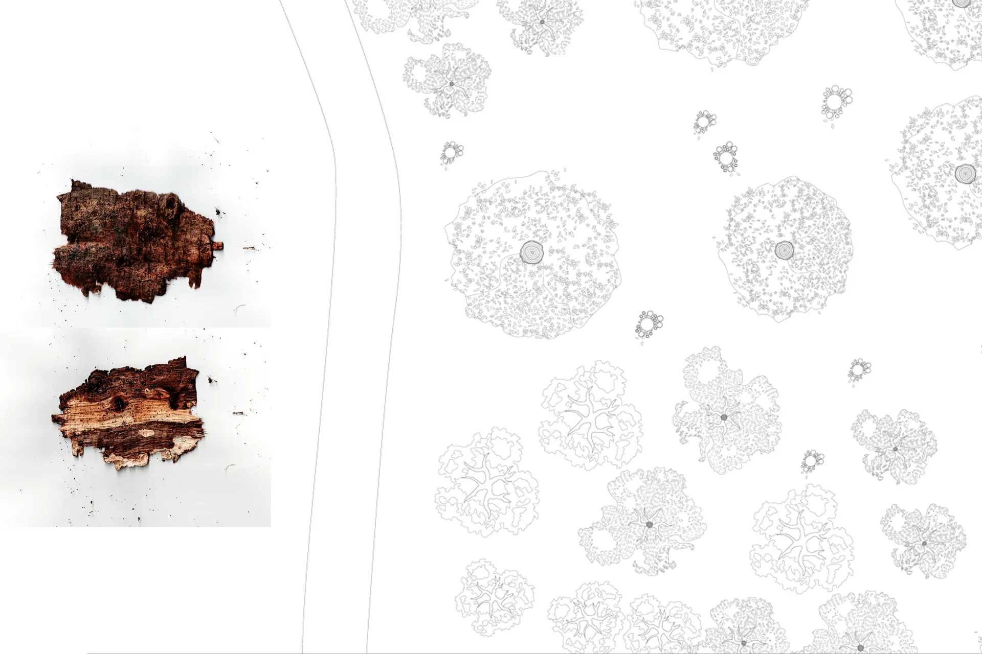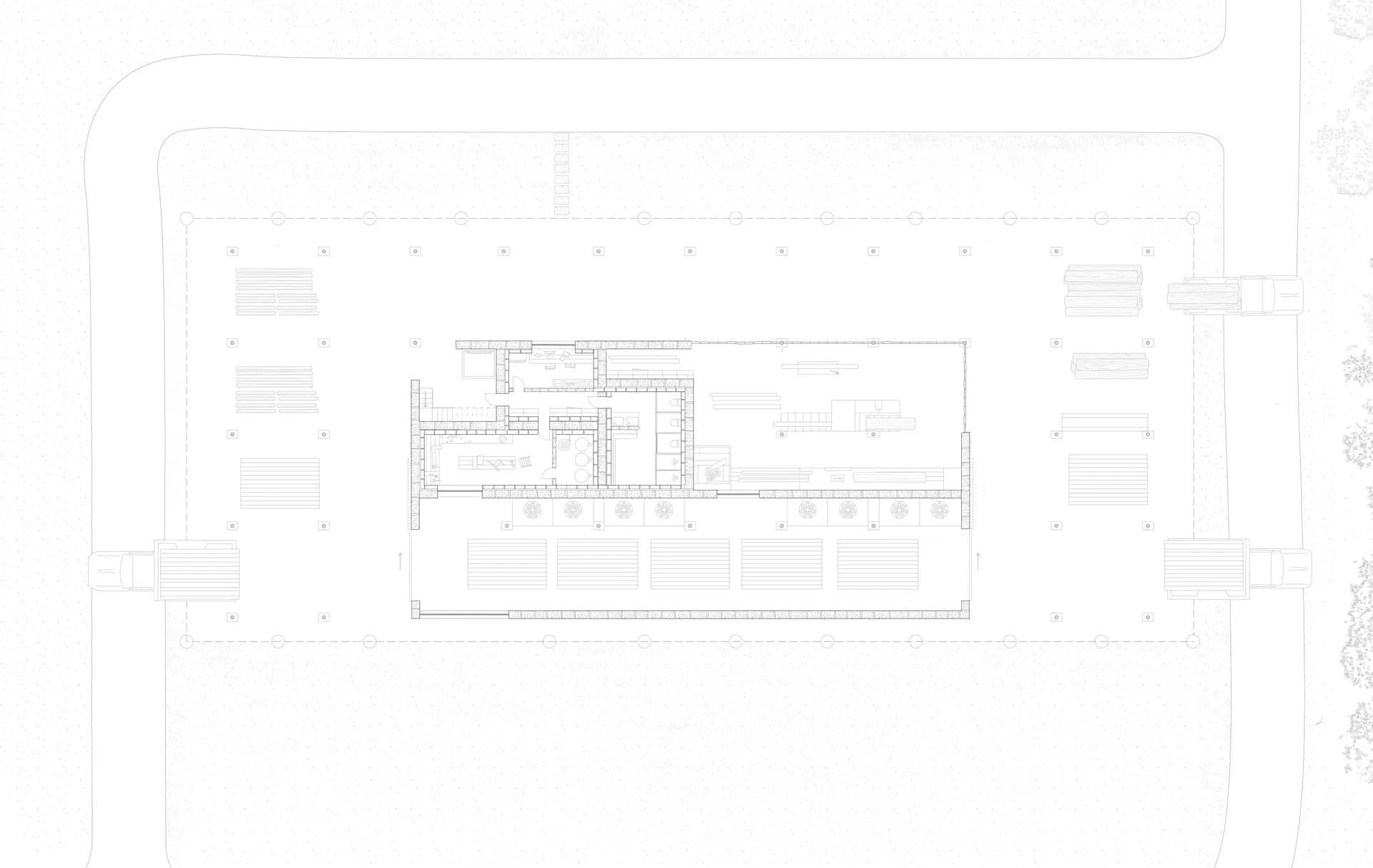My Project demonstrates the usefulness of unprocessed timber. Set in a woodland my protagonist, a forester, arrives intent on tending the land and eventually establishing a center for timber production. For these means I have designed two buildings – a house and a production facility using only wood immediately available on site. To save time this wood is unprocessed. By studying vernacular methods of timber construction I have identified and adapted building techniques to facilitate the use of timber early in its production cycle. Over the course of my project the structural and ecological advantages of raw timber revealed themselves, elevating it above a novelty or ornament to a genuine alternative method of construction.