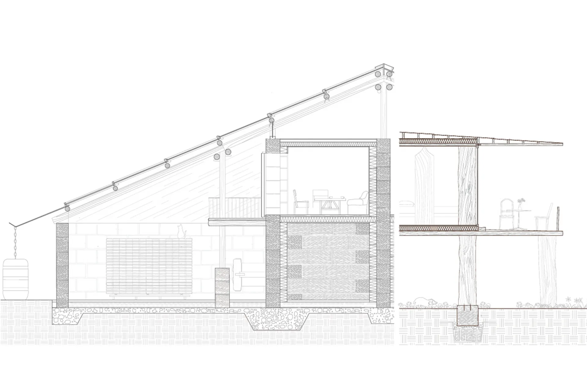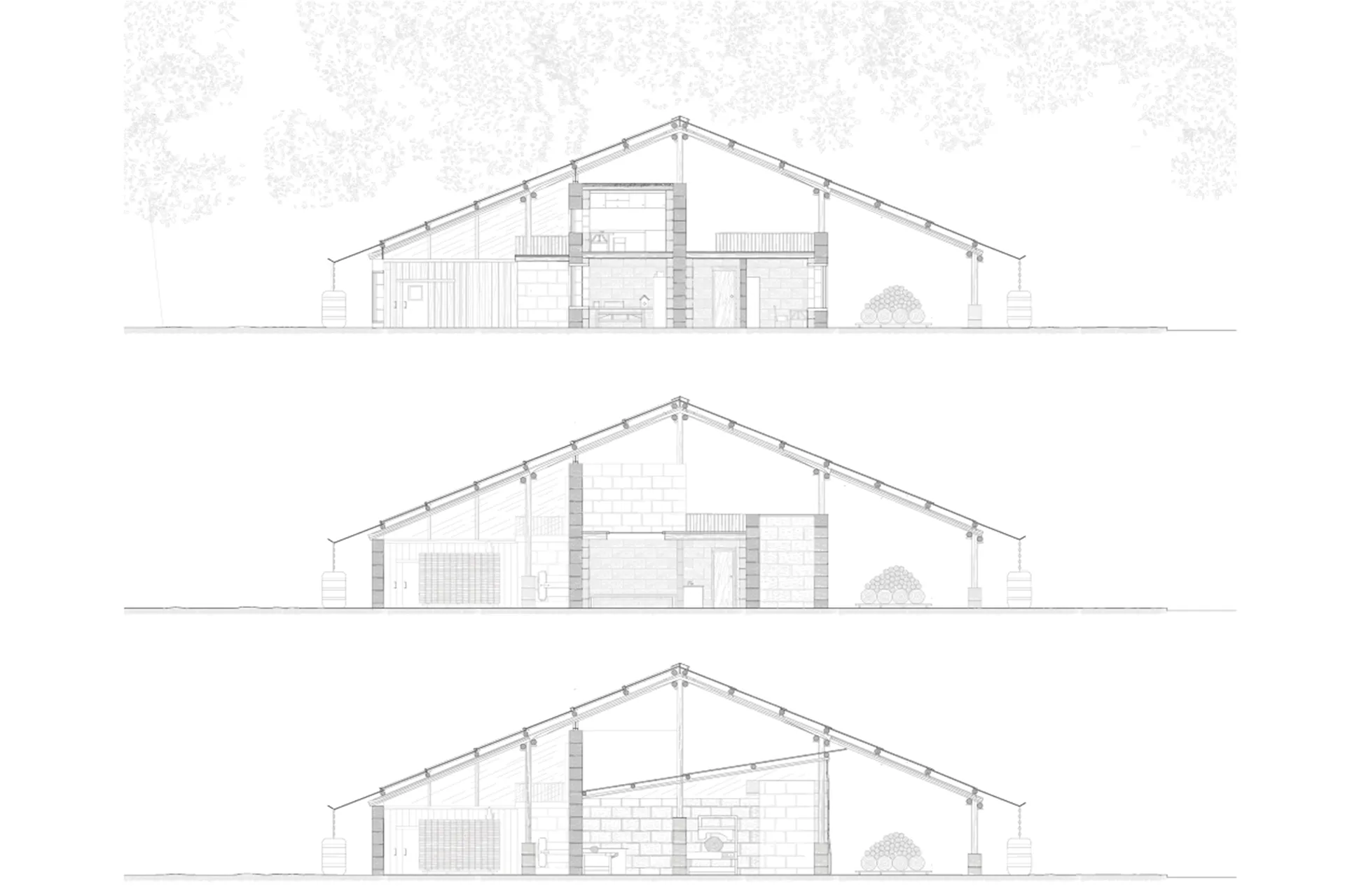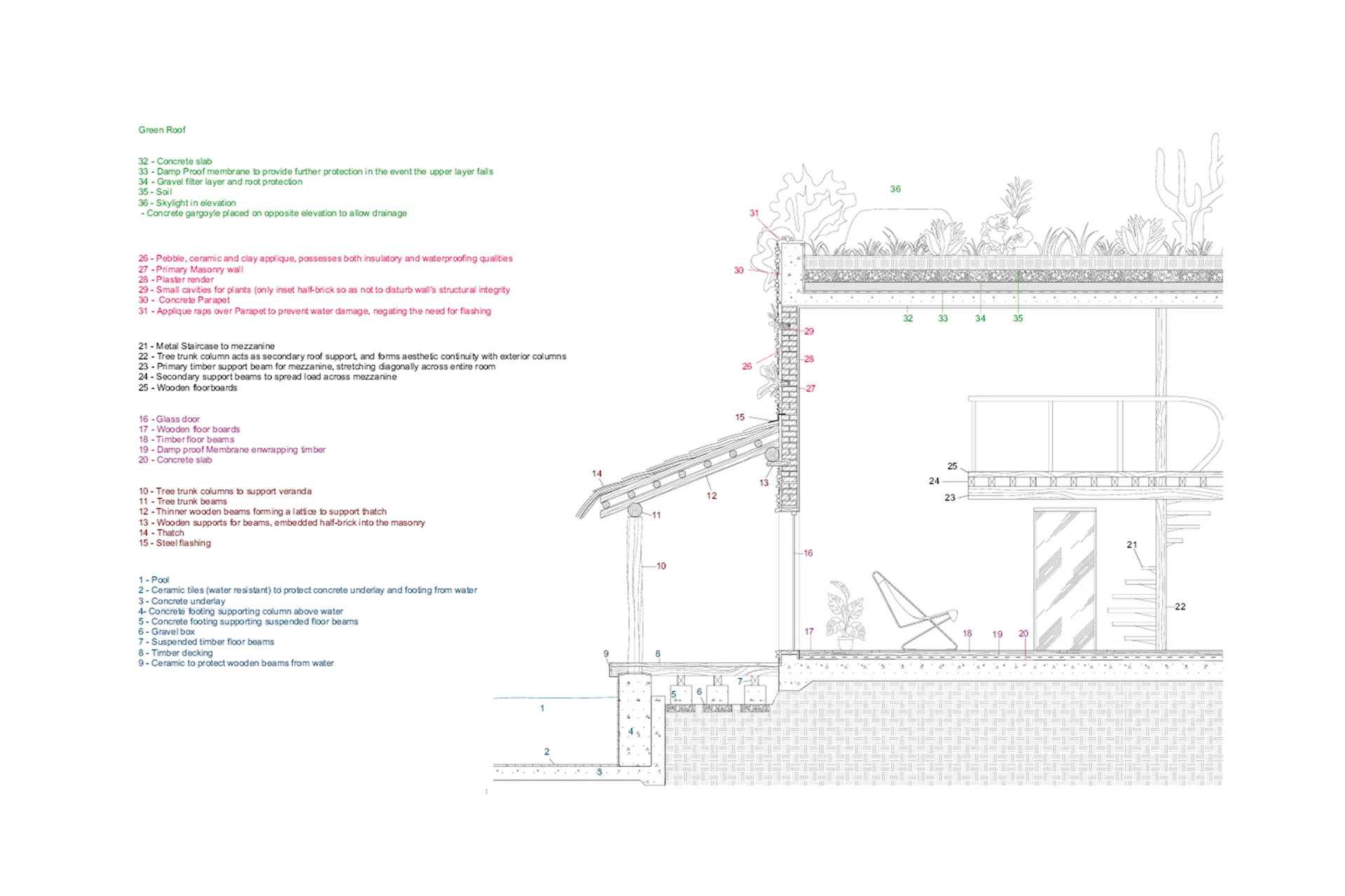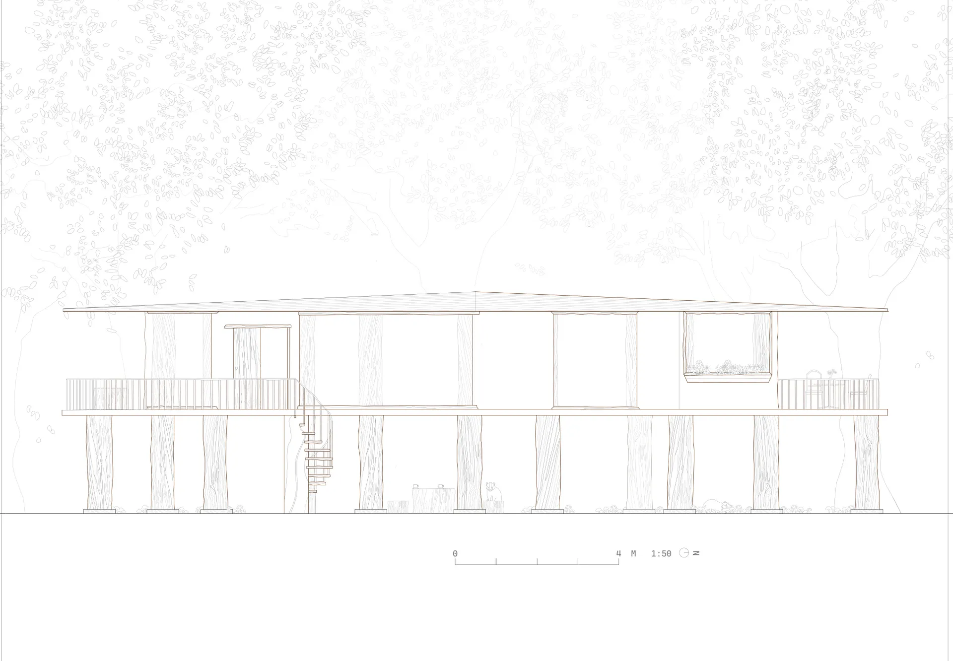 My Project demonstrates the usefulness of unprocessed timber. Set in a woodland my protagonist, a forester, arrives intent on tending the land and eventually establishing a center for timber production. For these means I have designed two buildings – a house and a production facility using only wood immediately available on site. To save time this wood is unprocessed. By studying vernacular methods of timber construction I have identified and adapted building techniques to facilitate the use of timber early in its production cycle. Over the course of my project the structural and ecological advantages of raw timber revealed themselves, elevating it above a novelty or ornament to a genuine alternative method of construction.