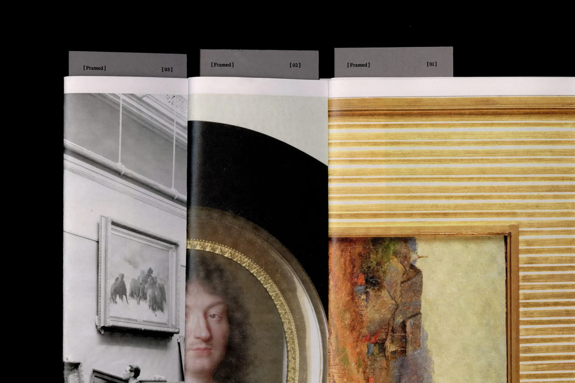 [Framed] is a visual monograph exploring the world of frames. Stemming from extensive visual research, it is presented as series of visual combinations. The publication intends to investigate the frame in the context of digital and contemporary art, questioning what constitutes a frame and a recognition of our relationship to them. Designed as a loose newsprint, the publication invites adaption, the re-organising of pages, and space for further research and visual references.
