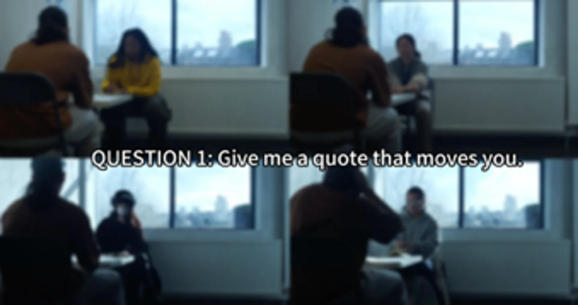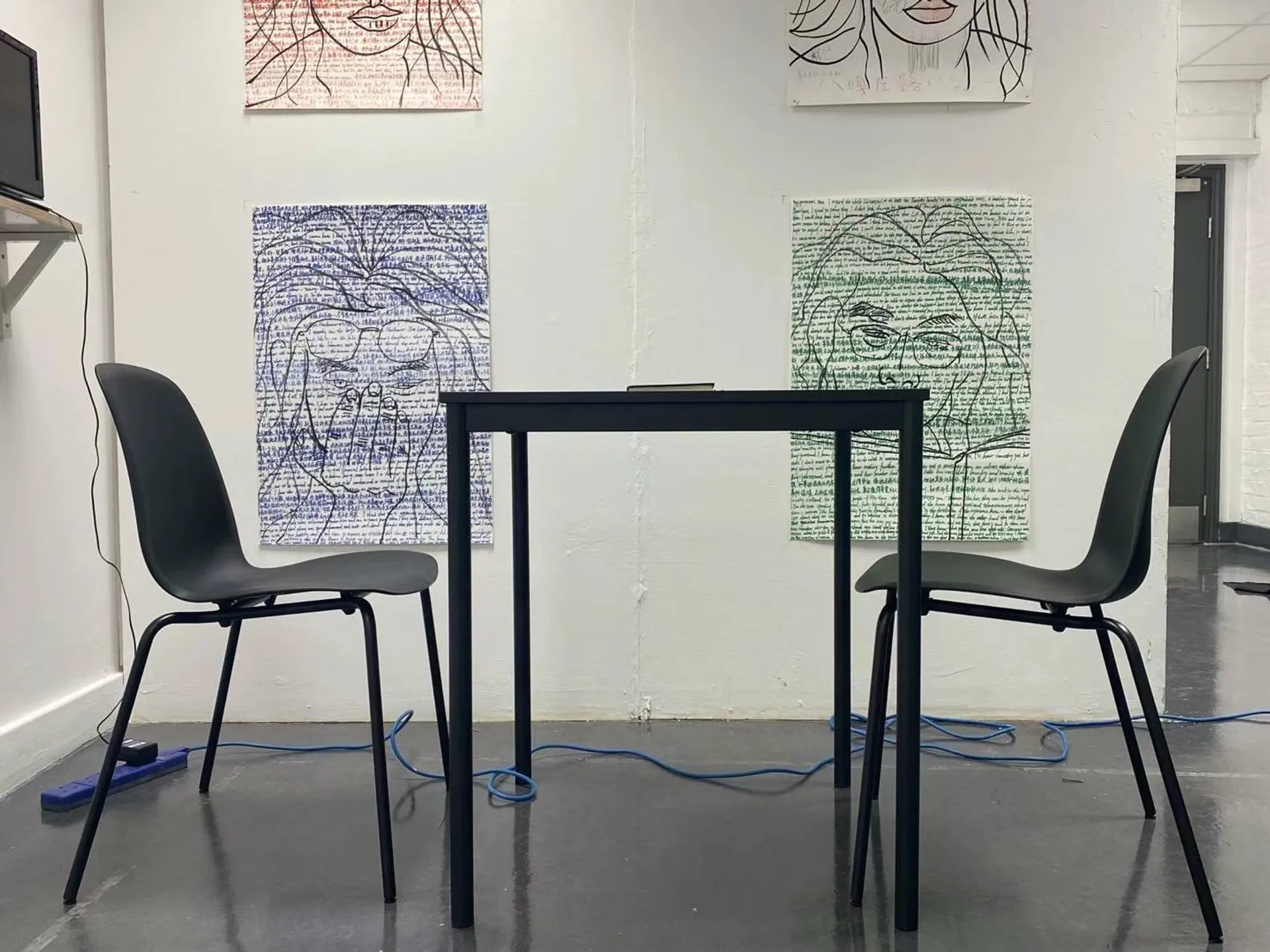 Two chairs, a table, notebooks on the table, and a video comprised the second piece. I asked three questions to a variety of individuals, documented the process in the form of a video, and then displayed the notebook containing their responses. In the interim, the tables and chairs would be utilised for the same series of inquiries that I posed to the audience in the room.