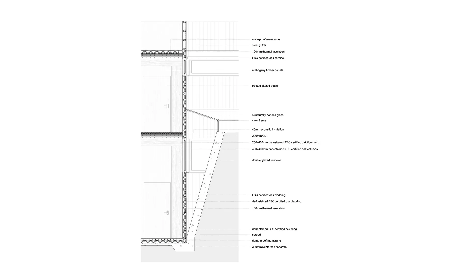 During the daytime, people can experience how the sunlight interacts with the rooms and how it changes throughout the day. During the nighttime, low-level warm lighting will be used to create a similar dimly lit room. The room uses dark timber to achieve a comfortable and natural atmosphere. All my design decisions were driven by the intention of creating a room where the individual can have a moment to sit and breathe.