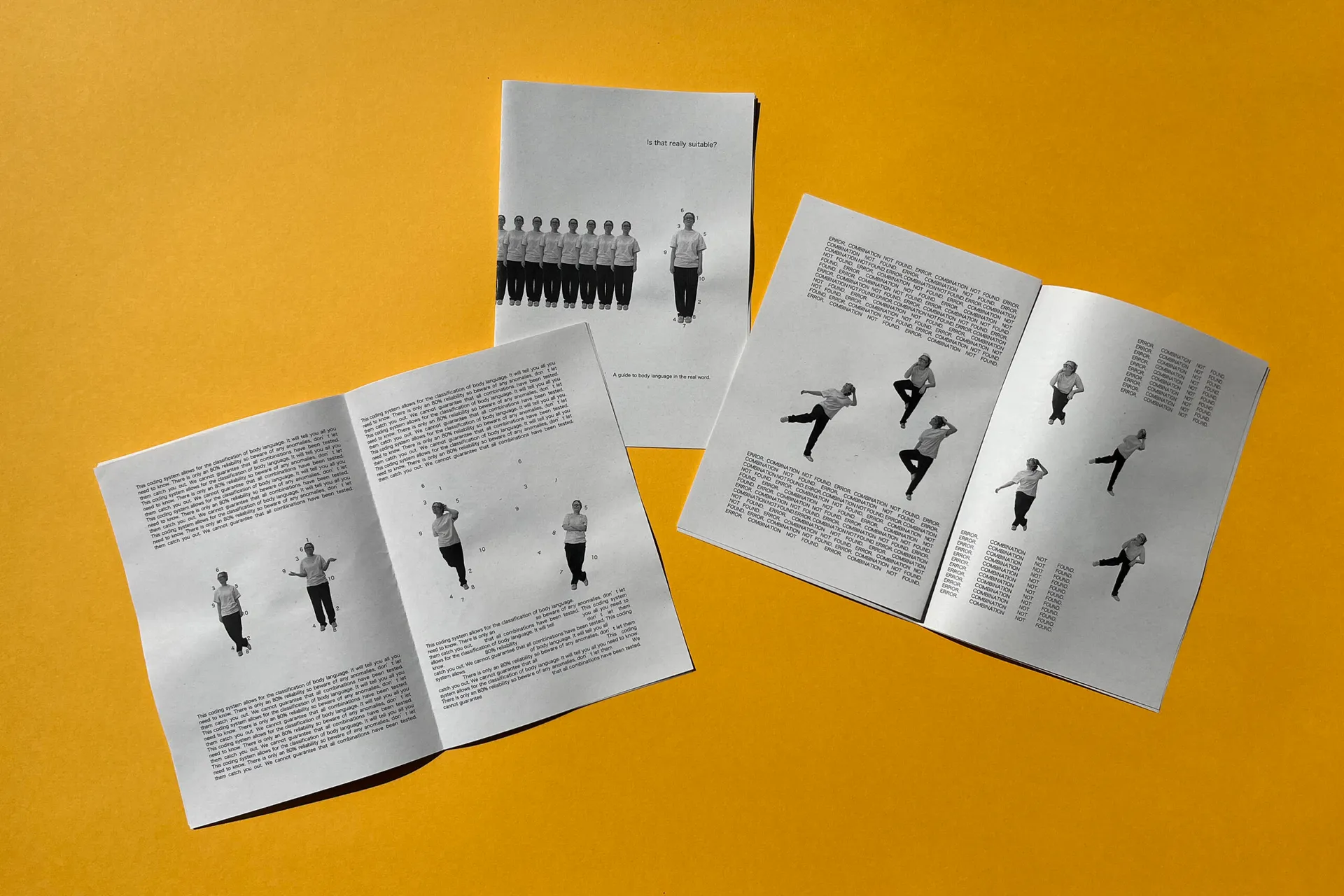 Alongside the film, I have made a publication giving the reader ideas on ways that they could get past the system, using it as a tool to create strange shapes with their body.