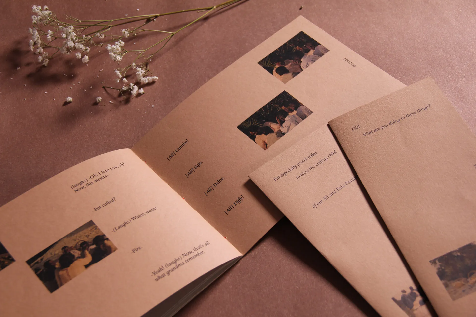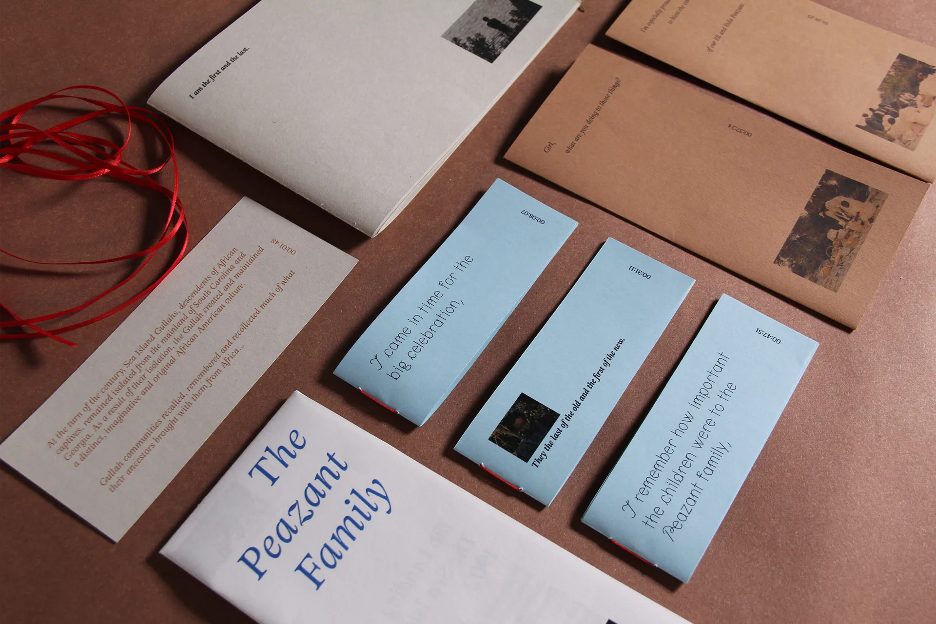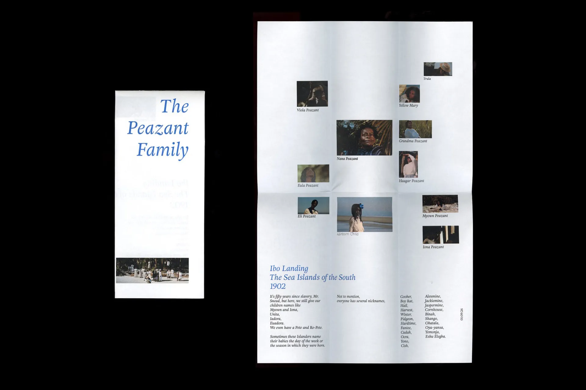 Daughters of the Dust is an unbound publication contained within a box that explores a selection of moments from the film (Daughters of the Dust, 1991) by Julie Dash, highlighting the themes of migration, memory and community. This project provided the opportunity to decode and republish moments from this film within the publication format, celebrating Dash’s reimagined, lyrical portrayal of African Americans on screen.