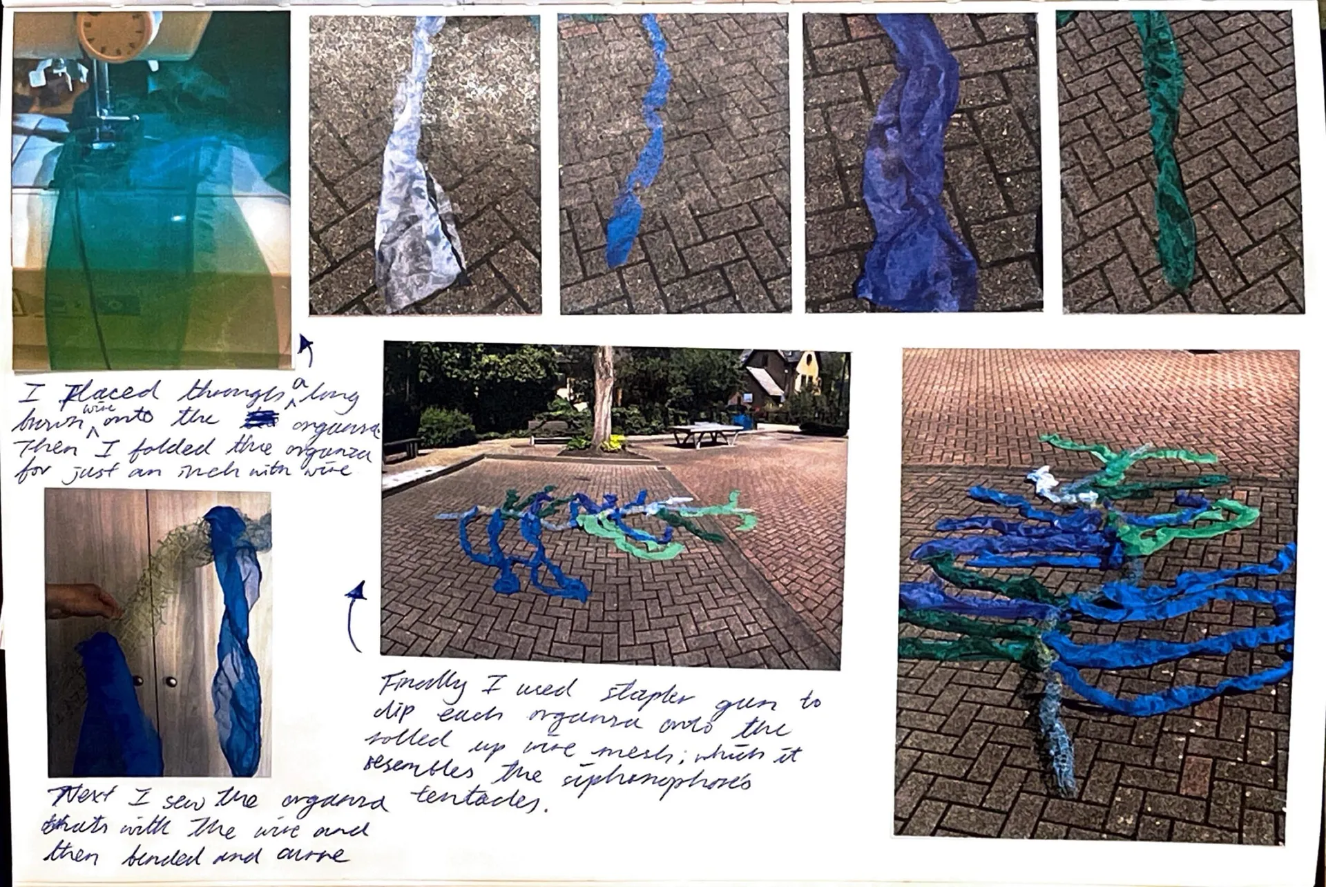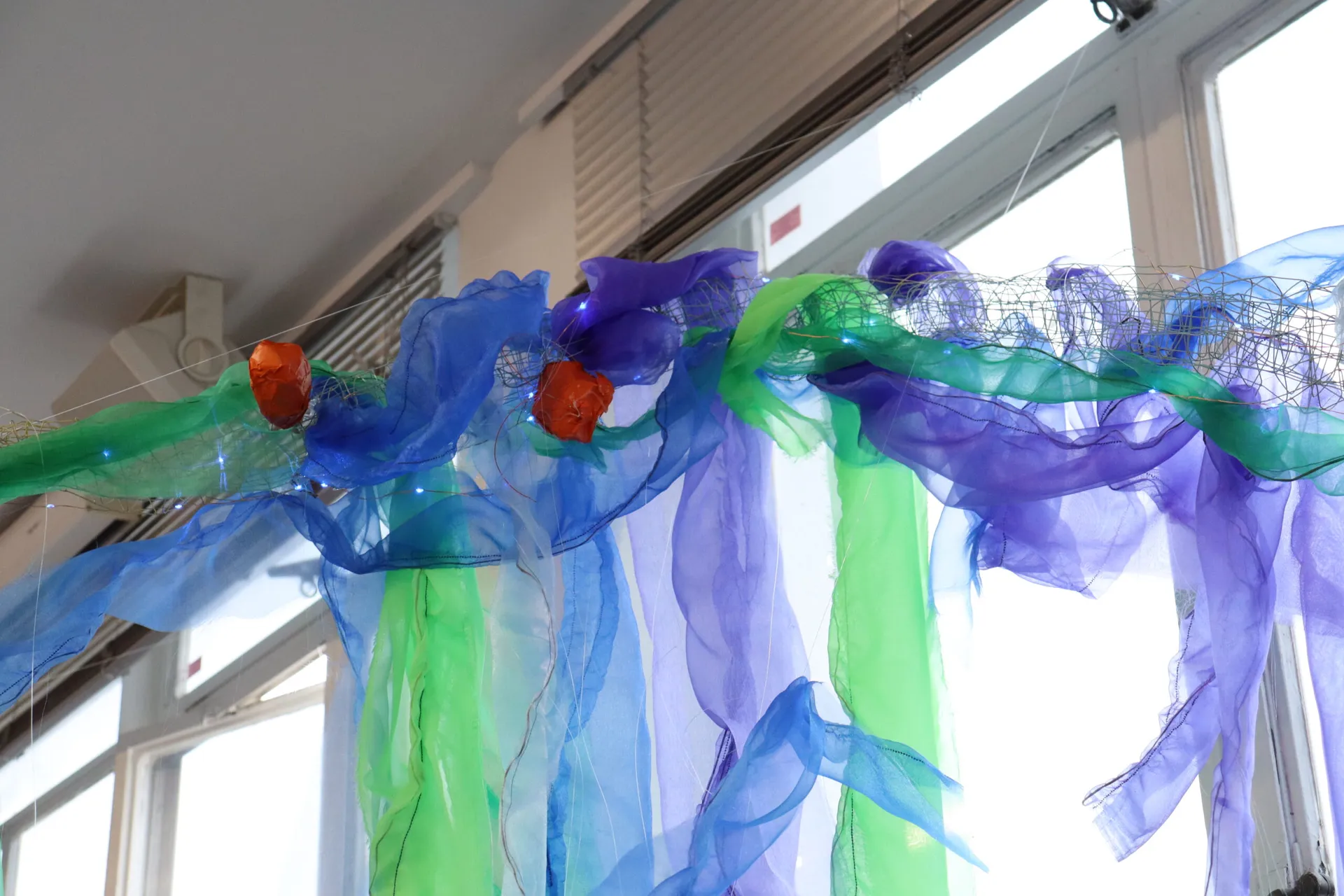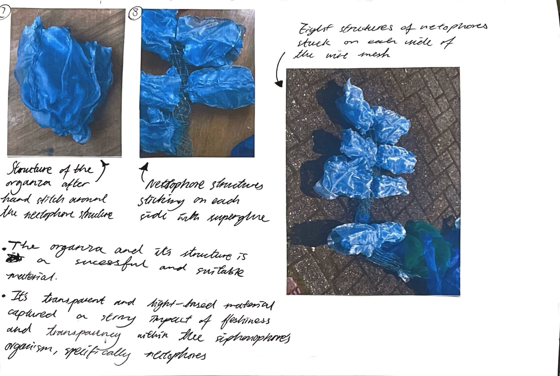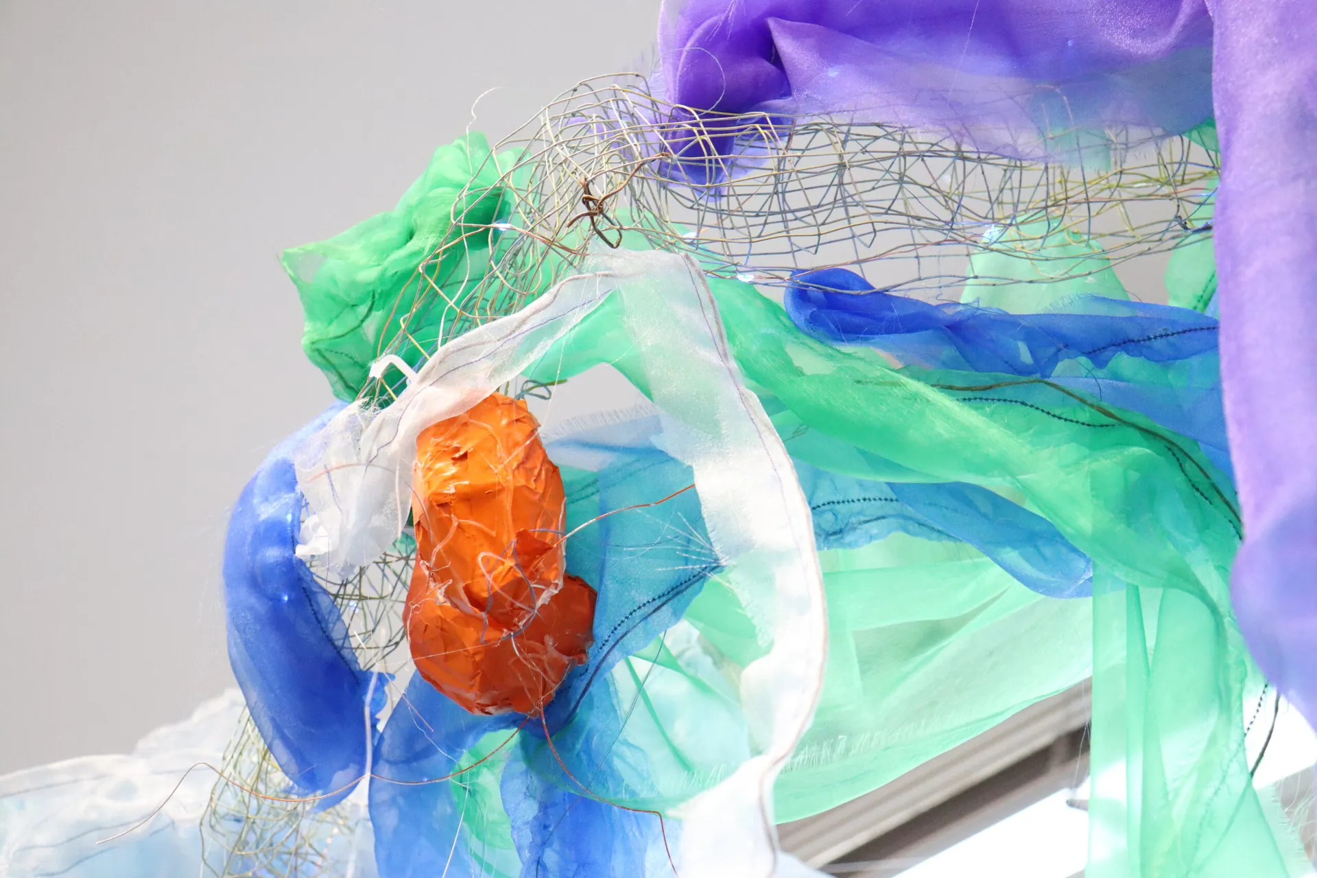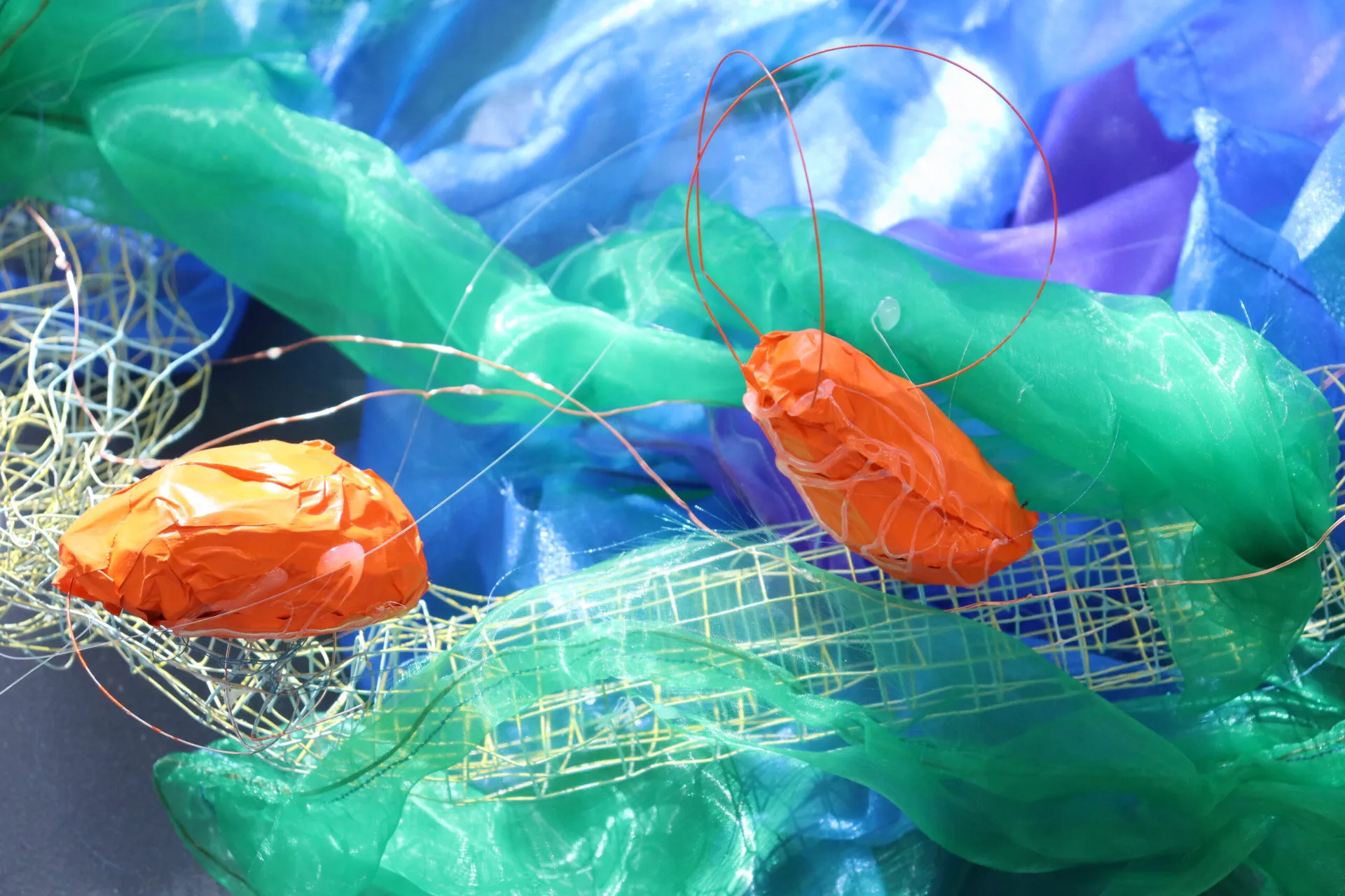 A “Giant Siphonophore”, is a colony of unusual organisms sticking onto its long and liberating stems swimming through the ocean’s depths like a gorgeous and living-like lantern. This is the quirkiest, most exotic, rare, and beautiful underwater species around the globe. This magnificent installation was used with a long rolled-up wire mesh resembling the siphonophore’s long and frolic stem with structural organzas resembling the transparent and fleshy layers of the nectophores and tentacles curved around. Looking closely, you can see this fascinating creature’s vibrant, colourful, and nostalgic textures heighten its energy and movement swimming freely. Furthermore, the colourful and transparent tentacles and organisms captivate an exotic and extraordinary environment with dangling strings of lights luminescent around the frolic structure that builds up to a different level.