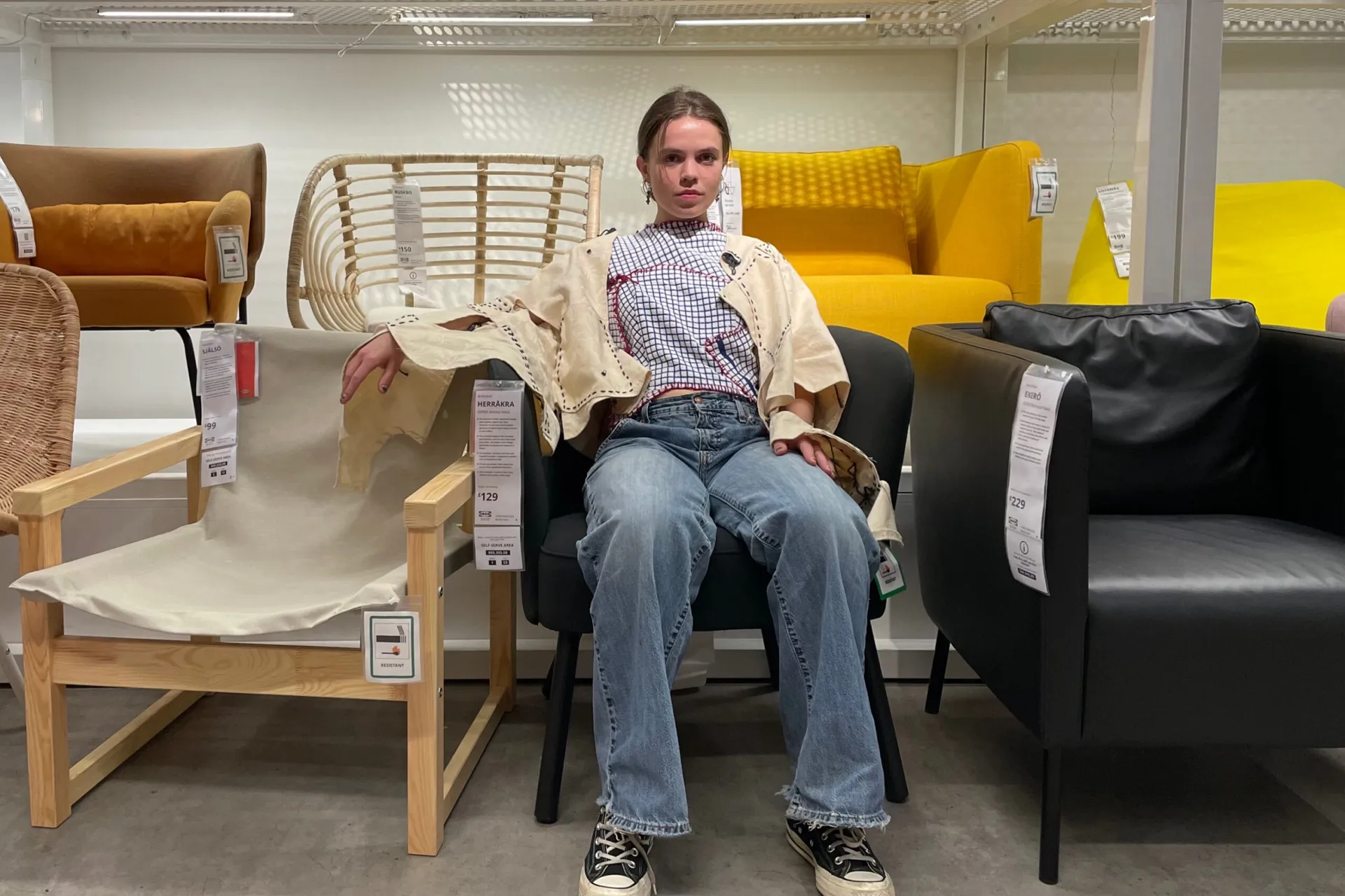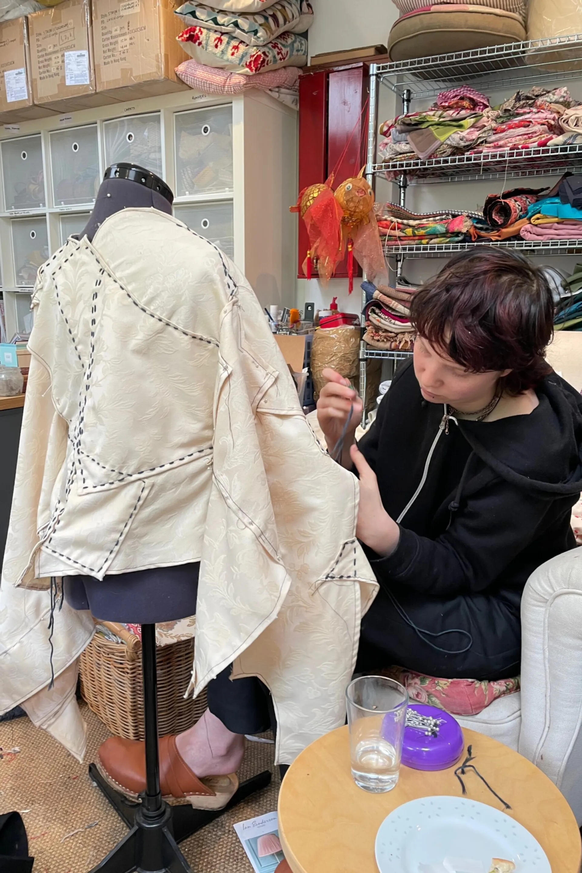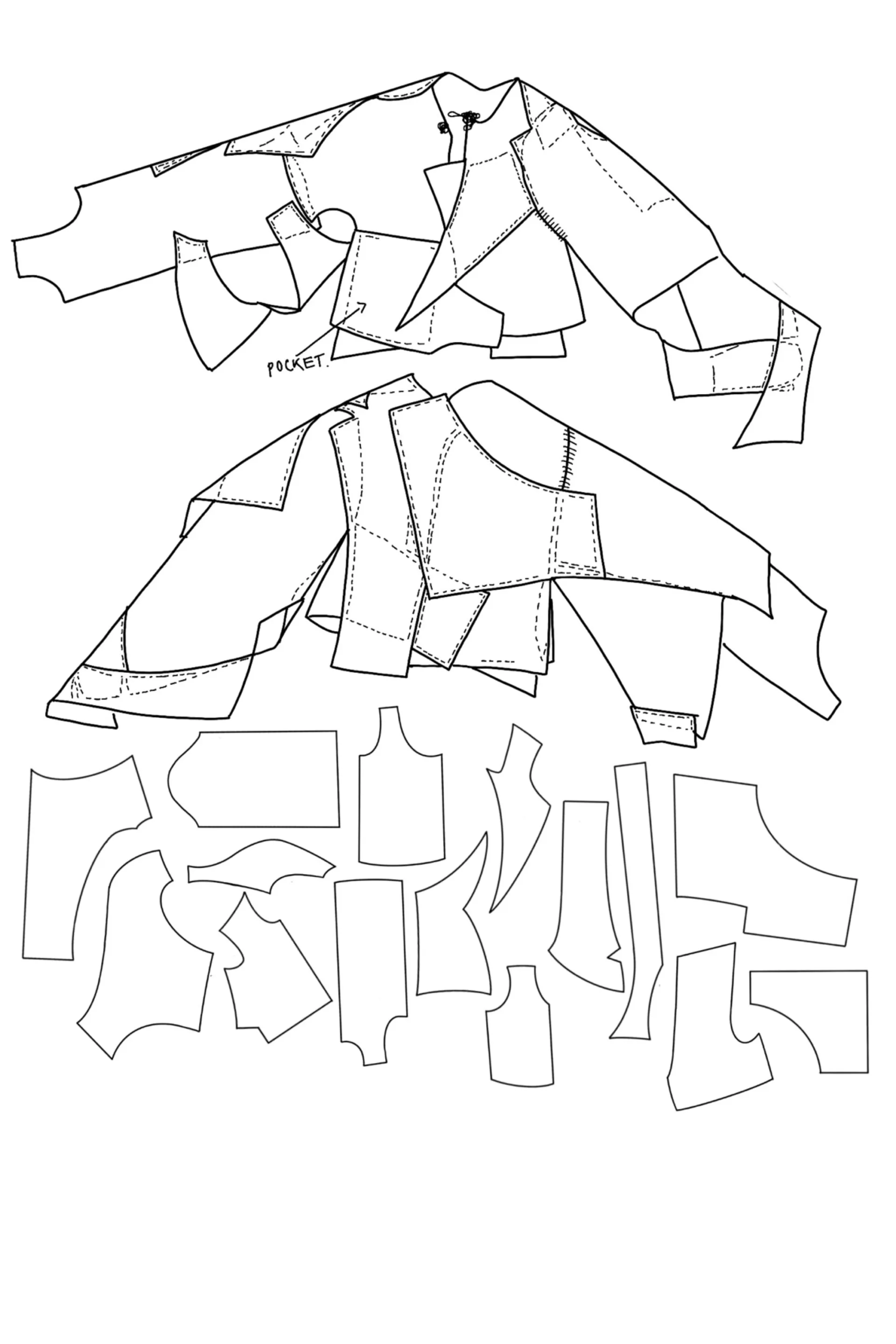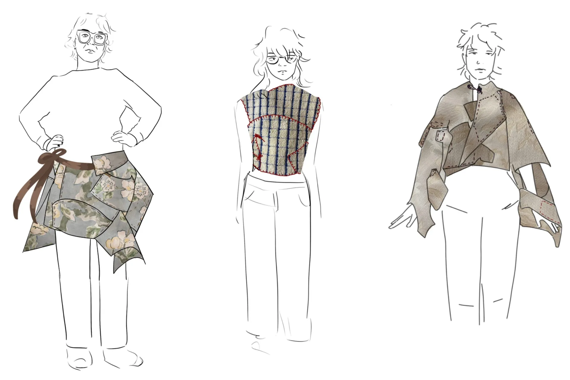 For the resolution of my FMP I have made a sewing kit of 18 pieces, with three garments made using the pieces. I have made a jacket, a top, and a skirt. Each piece is made of a different domestic textile. The intention of the kit is to encourage people who have little to no experience with sewing to try sewing.