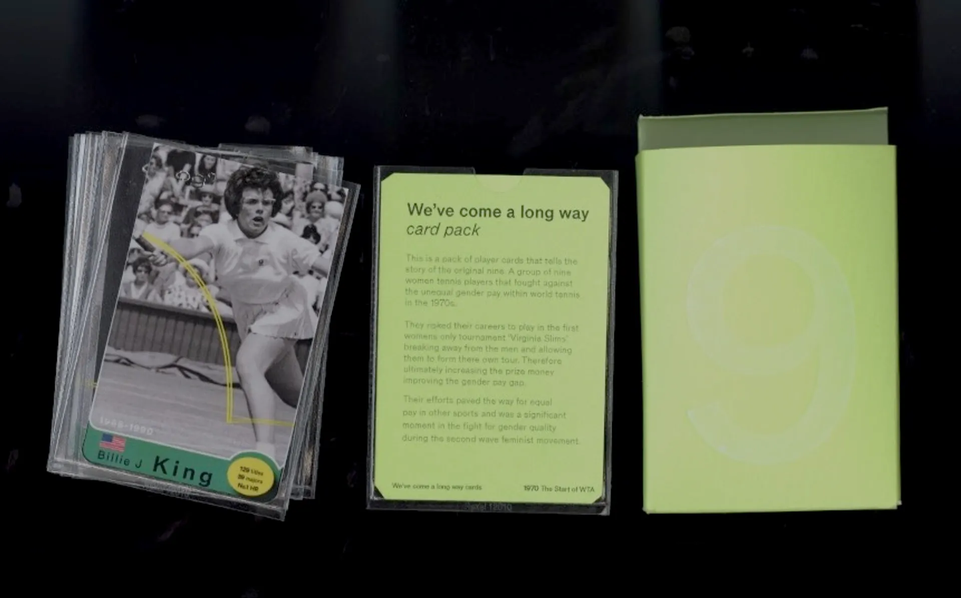 A player card pack that celebrates and tells the story of the ‘Original Nine’ tennis players. These nine female players fought for more equal pay in professional tennis and formed the Women’s Tennis Association in the 1970s.