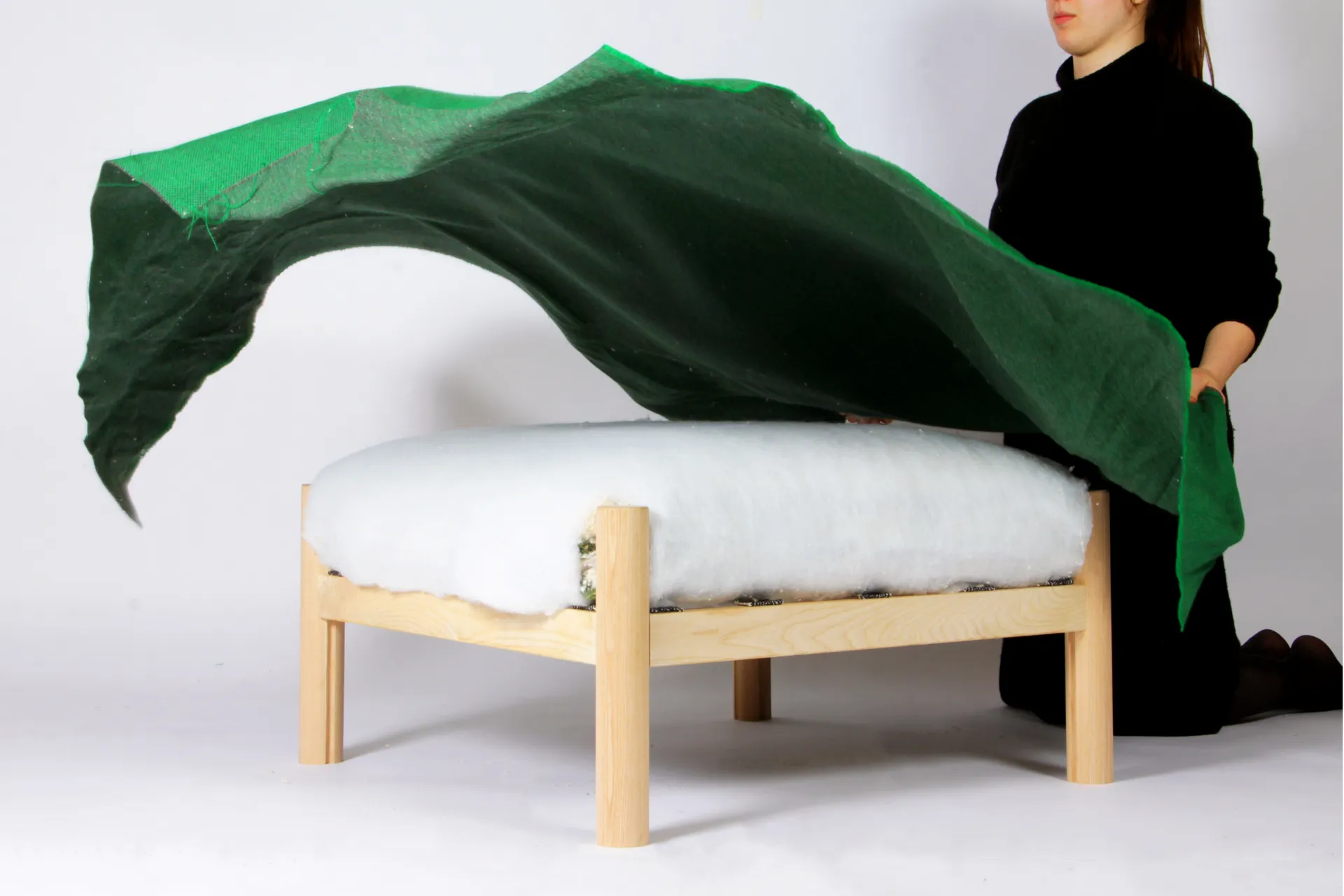 Upholstered furniture is part of our everyday lives, and the fabric chosen is what makes it personal, but it is also the first thing to wear out, get dirty, or simply become outdated. However, throwing furniture away because of the external cover whilst the other materials are still functioning is wasteful and expensive. From this, my brief set itself: Designing an upholstery system that disassembles to minimise waste, save on re-upholstery costs, and extend the lifetime of an upholstered product.