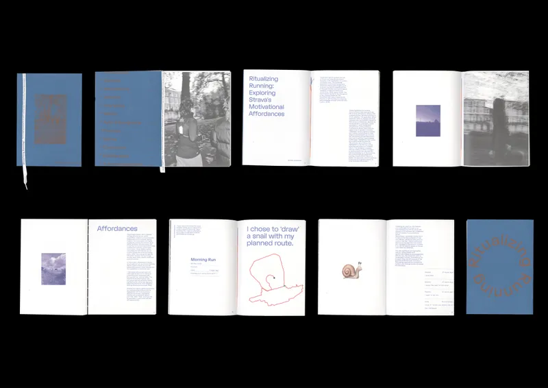 Publishing first hand, an anthropological study on “Ritualizing Running” by Elise Jorgensen, delving into the contemporary perceptions of running. “Ritualizing Running” is presented as an A4 editorial publication. Additionally, included are photographs I took, all centered around the theme of running. The book features exposed kettle binding, with elements printed using both risograph, silk-screen and digital printing techniques.