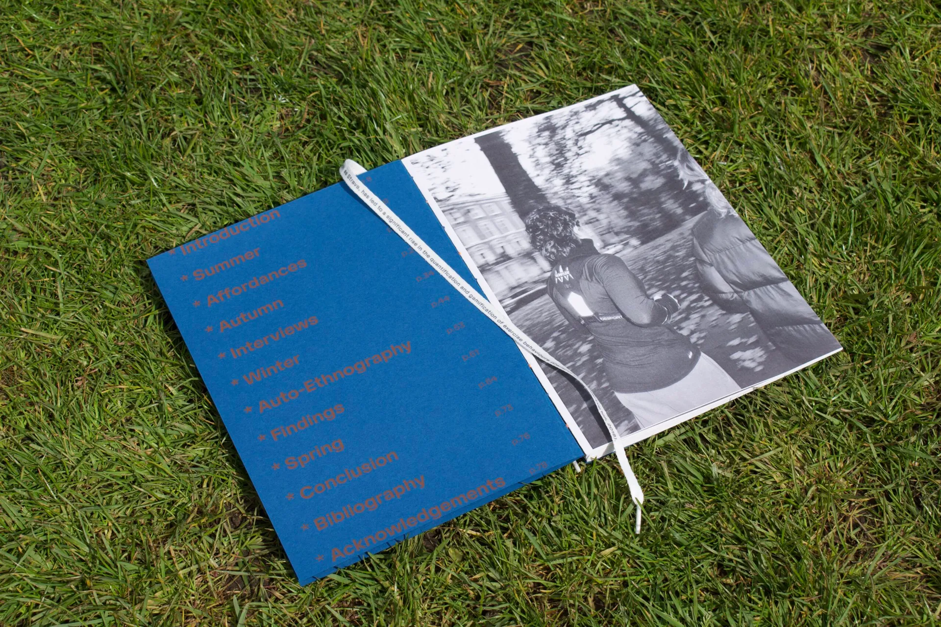 Publishing first hand, an anthropological study on “Ritualizing Running” by Elise Jorgensen, delving into the contemporary perceptions of running. “Ritualizing Running” is presented as an A4 editorial publication. Additionally, included are photographs I took, all centered around the theme of running. The book features exposed kettle binding, with elements printed using both risograph, silk-screen and digital printing techniques.