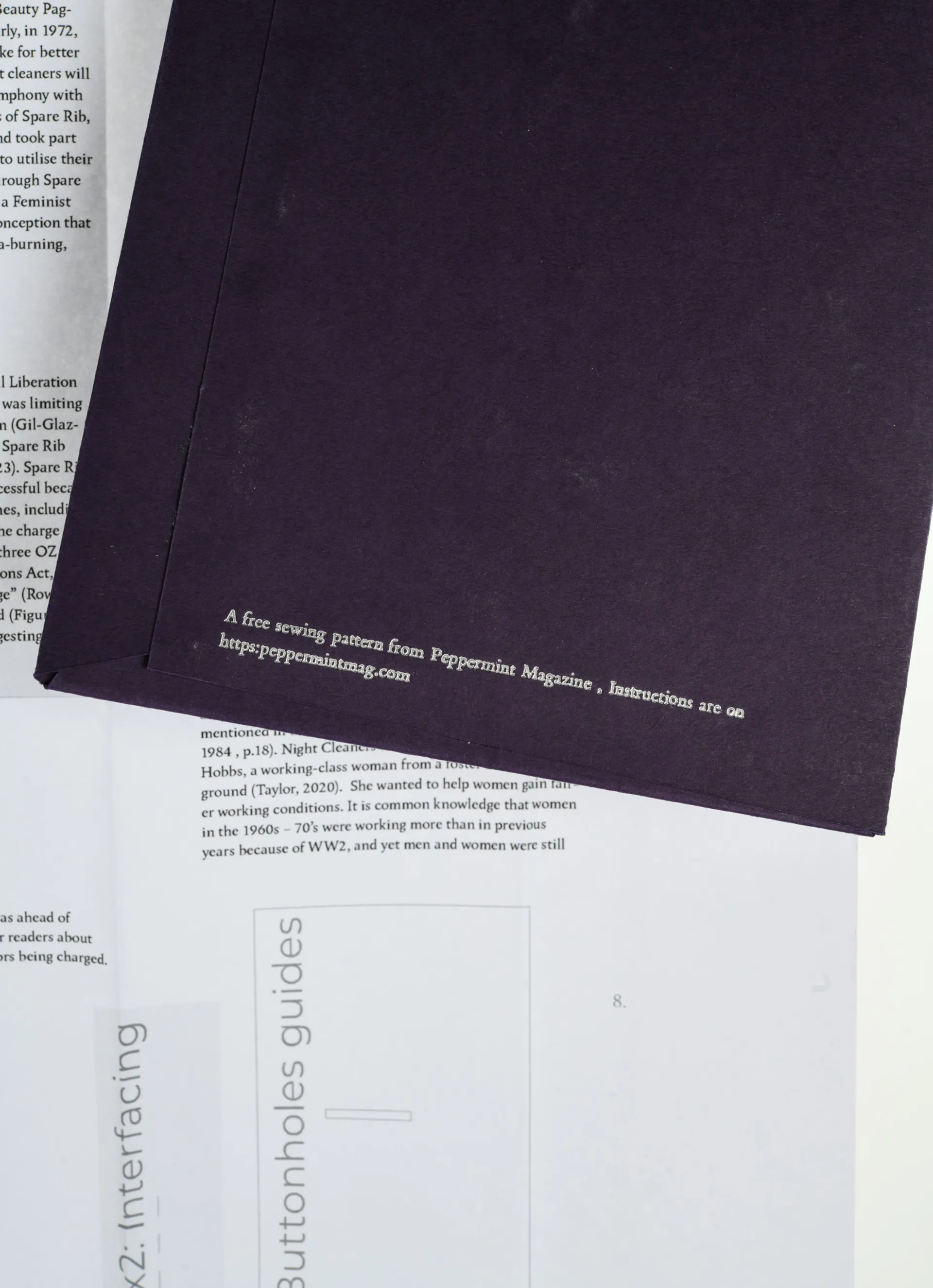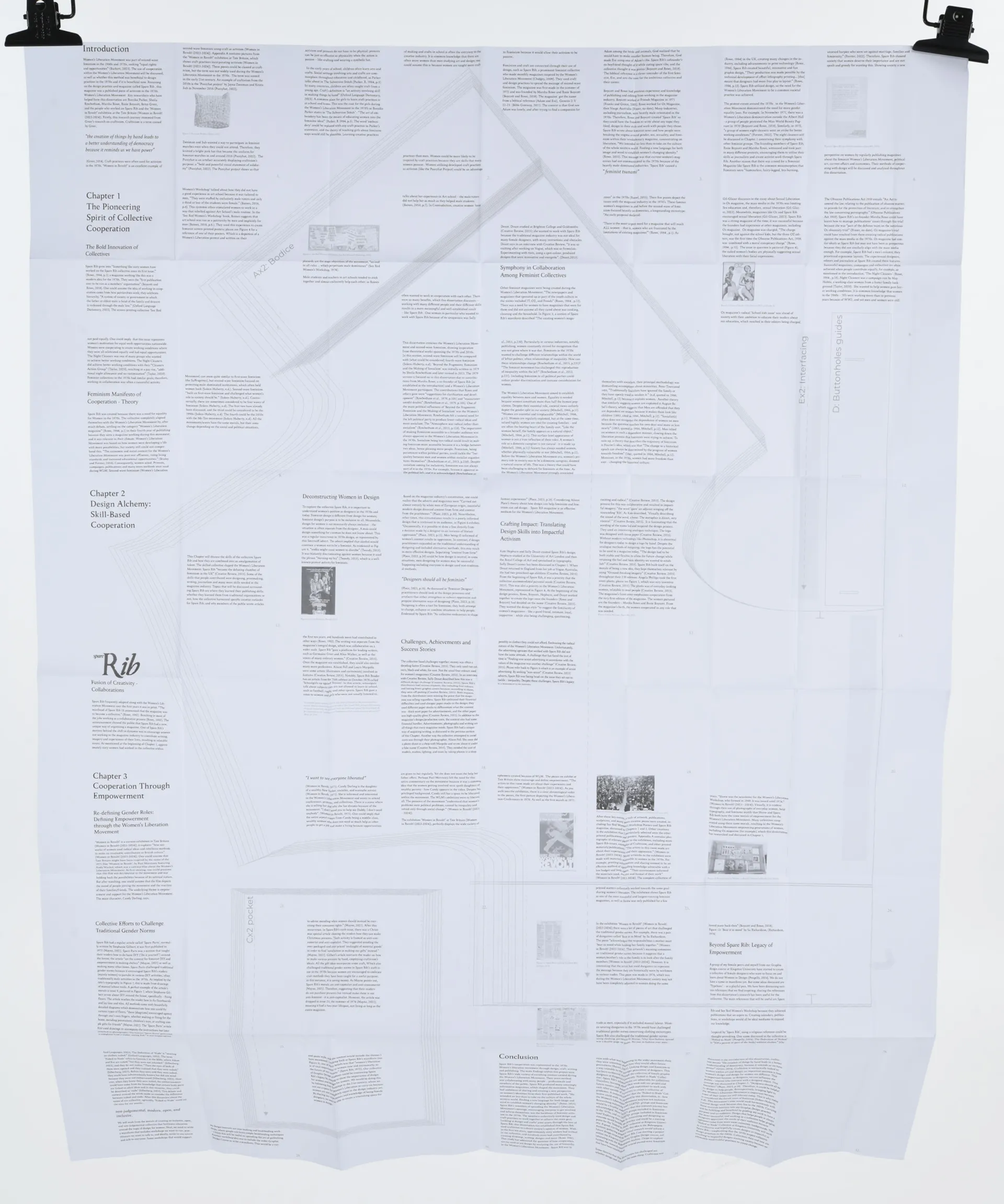 An alternative style publication inspired by my dissertation, “How Did Cooperation Shape the Design of Spare Rib?”. I published this onto a jumpsuit garment pattern, emphasising how Feminist’s are inspired by textile crafts.