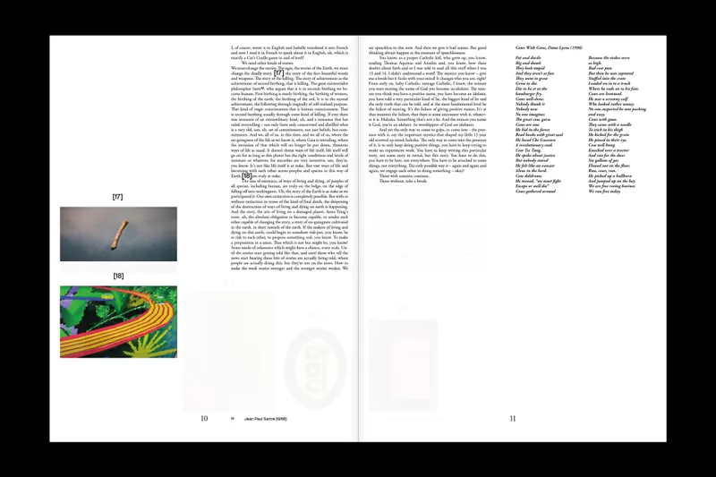 Terrapolis is a collection of chap books for my ecofeminist digital research. When producing them, I condensed my research into print through transmediation and transmutation, which drove the form of my books. Inflecting digital research to printed matter meant it was adapted to a different medium. Design choices in displaying said research, such as the alternative use of footnoting and loose inserts, allow the reader to form their interpretation of the discourse. Underpinning this project is The Carrier Bag Theory of Fiction, Le Guin, which looks to new methods of feminist storytelling. It informed my research, which includes ecology, hydrology and mythology.