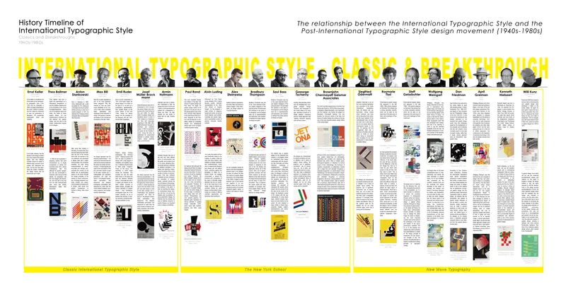 The core research object of this project is the International Typographic Style (hereinafter referred to as ITS), which was born after the Second World War and has had a profound influence to this day. The aim of this project is to explore the relationship between the seemingly stylistically creative ‘Postmodernist’ styles represented by New York School and New Wave Typography and the classic ITS by adopting the method of visual analysis in order to verify and deduce the relationship between the design styles of those who tried to escape from the monotony and seriousness of the classic ITS and the classic ITS that still have inheritance and development.