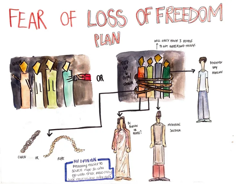 My project is on the topic of ‘Fear’. I specifically looked into what causes people to feel fear, whether fear can be categorised, and how have societal fears developed over time. Additionally, I researched the depiction of certain fears in artwork, and how certain art movements such as the Renaissance movement, influenced the ways in which artists presented and approached these subject matters. I took inspiration from the Chiaroscuro technique, commonly used during the 1500s and recreated my own ‘paintings’ photographically, with each of them displaying a specific societal fear. Each figure in each piece is wearing a selected garment reflecting a certain time period, ranging from BC to modern day times, to reveal how fear is not bound by time.