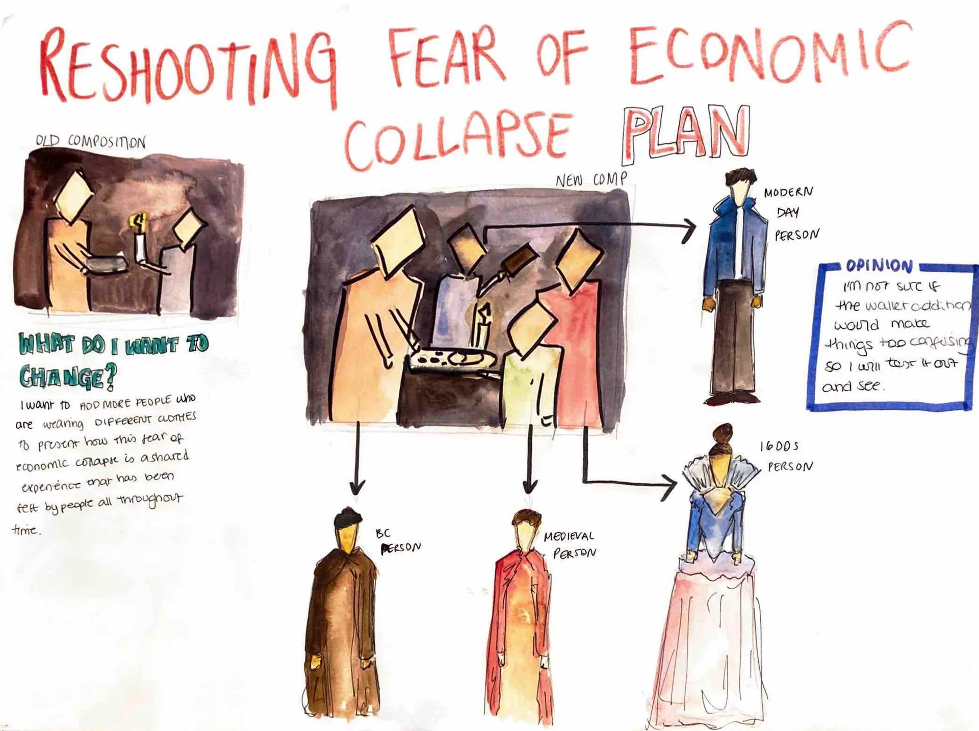 My project is on the topic of ‘Fear’. I specifically looked into what causes people to feel fear, whether fear can be categorised, and how have societal fears developed over time. Additionally, I researched the depiction of certain fears in artwork, and how certain art movements such as the Renaissance movement, influenced the ways in which artists presented and approached these subject matters. I took inspiration from the Chiaroscuro technique, commonly used during the 1500s and recreated my own ‘paintings’ photographically, with each of them displaying a specific societal fear. Each figure in each piece is wearing a selected garment reflecting a certain time period, ranging from BC to modern day times, to reveal how fear is not bound by time.