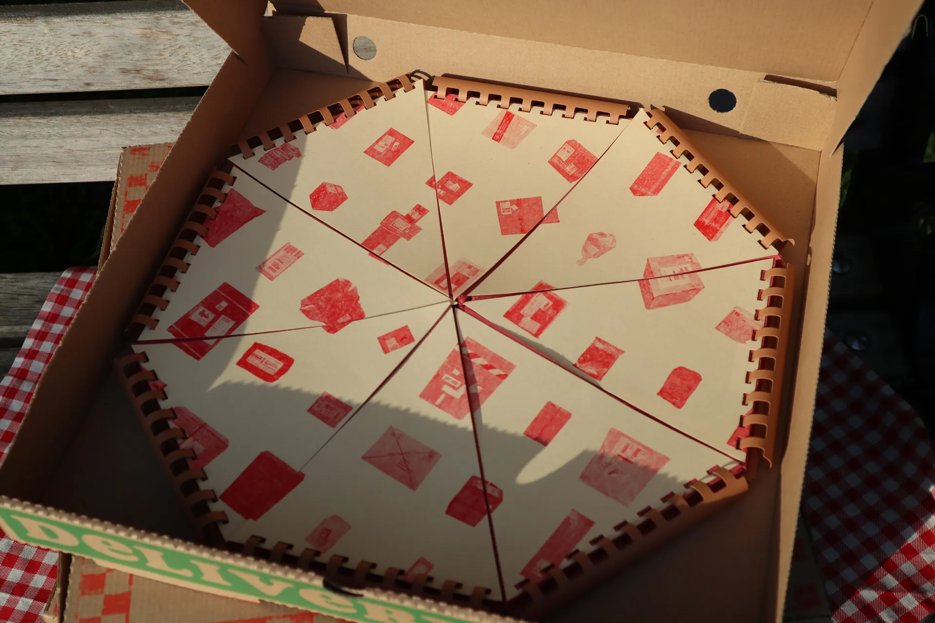 A publication (pizzacation?) exploring the unsung story of delivery through the eyes of people who facilitate this journey from A to B. With imagery from a range of sources it creates a singular narrative based on the transportation of anything from fresh milk to illegal drugs. Based on the style of a takeaway pizza (as one of the most recognisable forms of delivery) and comprised of 8 unique publication slices contained within a custom-designed box.