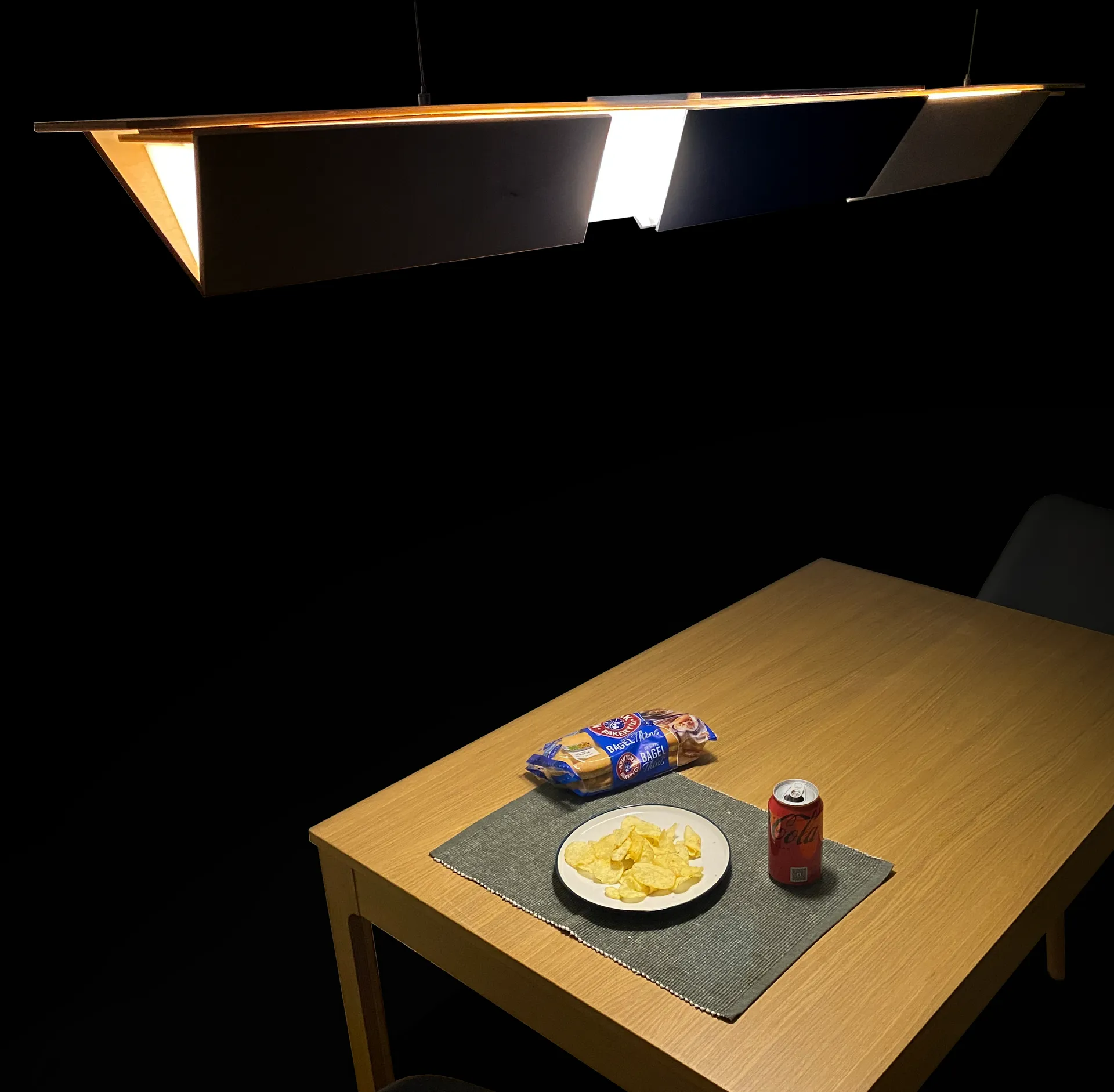 TRI: beam VERSA can adjust the light using its movable panels and sleek design. Brings a refined touch to dining or office spaces, blending functionality with understated elegance.