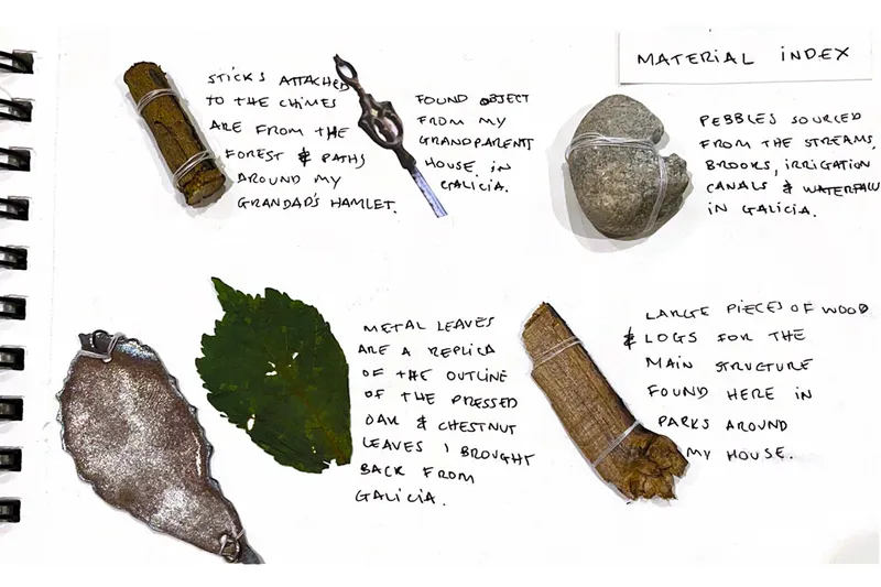 The swallows in the oak forest, church bells, flowing water, and rustle of rye fields are not just heard but felt, crafted from materials collected from Galicia and London. Through this, I explored how materials hold memories, weaving a narrative that connects lineage with landscape.