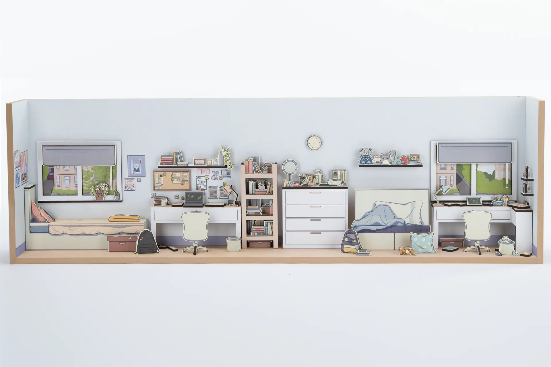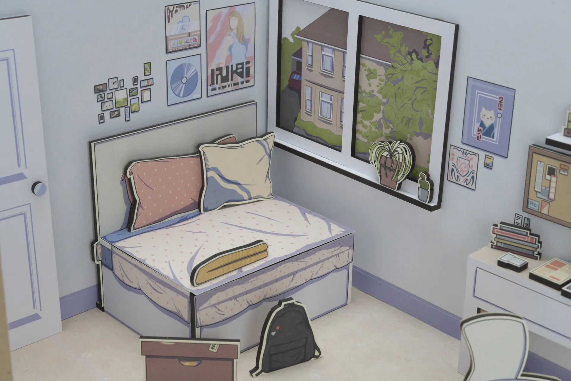 This interactive piece explores sisterhood in a funny and light-hearted manner. On the surface, this 3D model showcases an interior of a bedroom serving as the first glimpse to who might be residing there, hints to their personalities subtly shown through the details of the items and placements. Within the set are hidden QR codes, leading to comedic animated shorts revealing the playful dynamic of two sisters. The idea behind this is to encourage the audience to look deep within the piece to uncover the truth of who lives there.