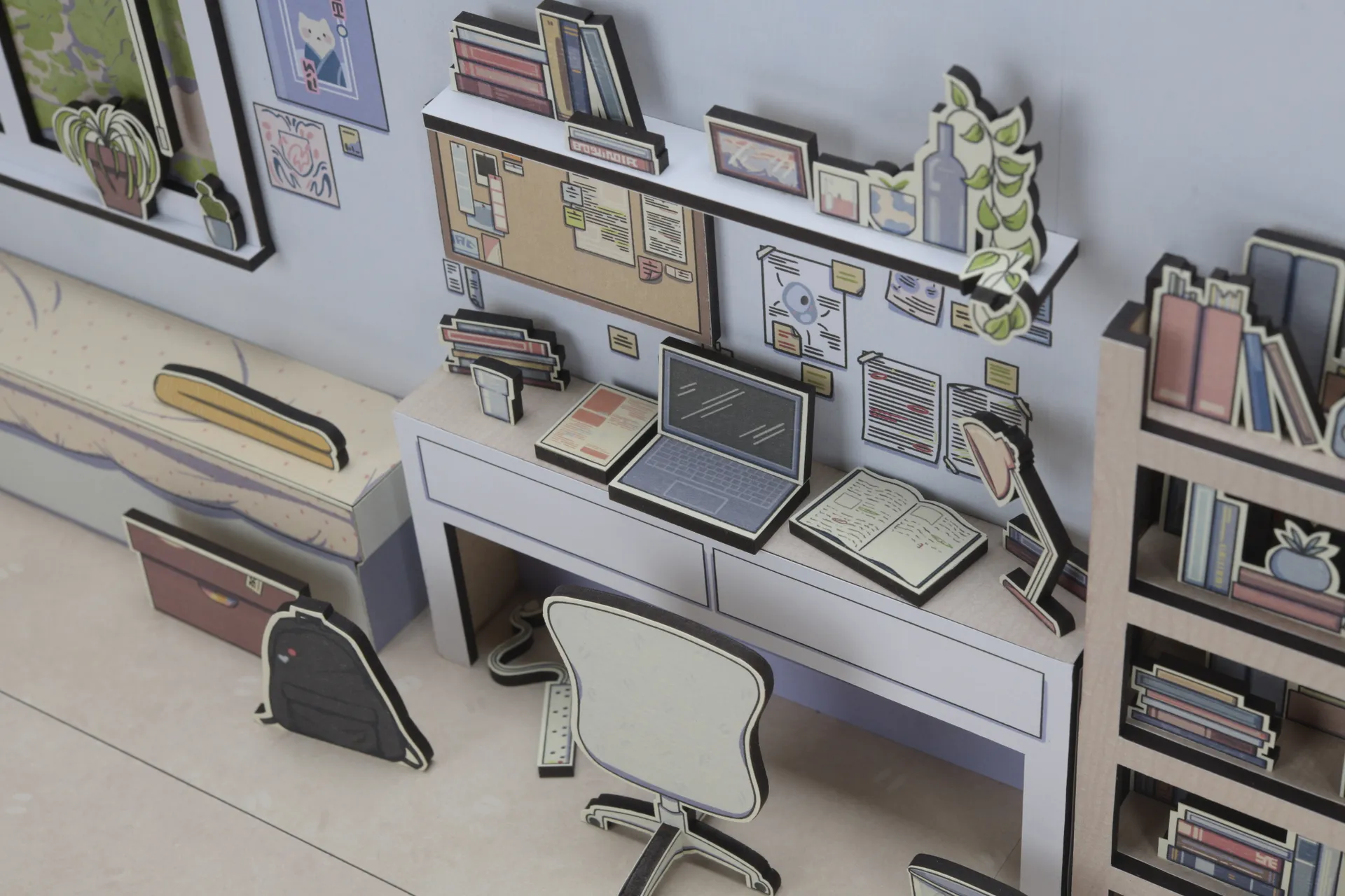 This interactive piece explores sisterhood in a funny and light-hearted manner. On the surface, this 3D model showcases an interior of a bedroom serving as the first glimpse to who might be residing there, hints to their personalities subtly shown through the details of the items and placements. Within the set are hidden QR codes, leading to comedic animated shorts revealing the playful dynamic of two sisters. The idea behind this is to encourage the audience to look deep within the piece to uncover the truth of who lives there.