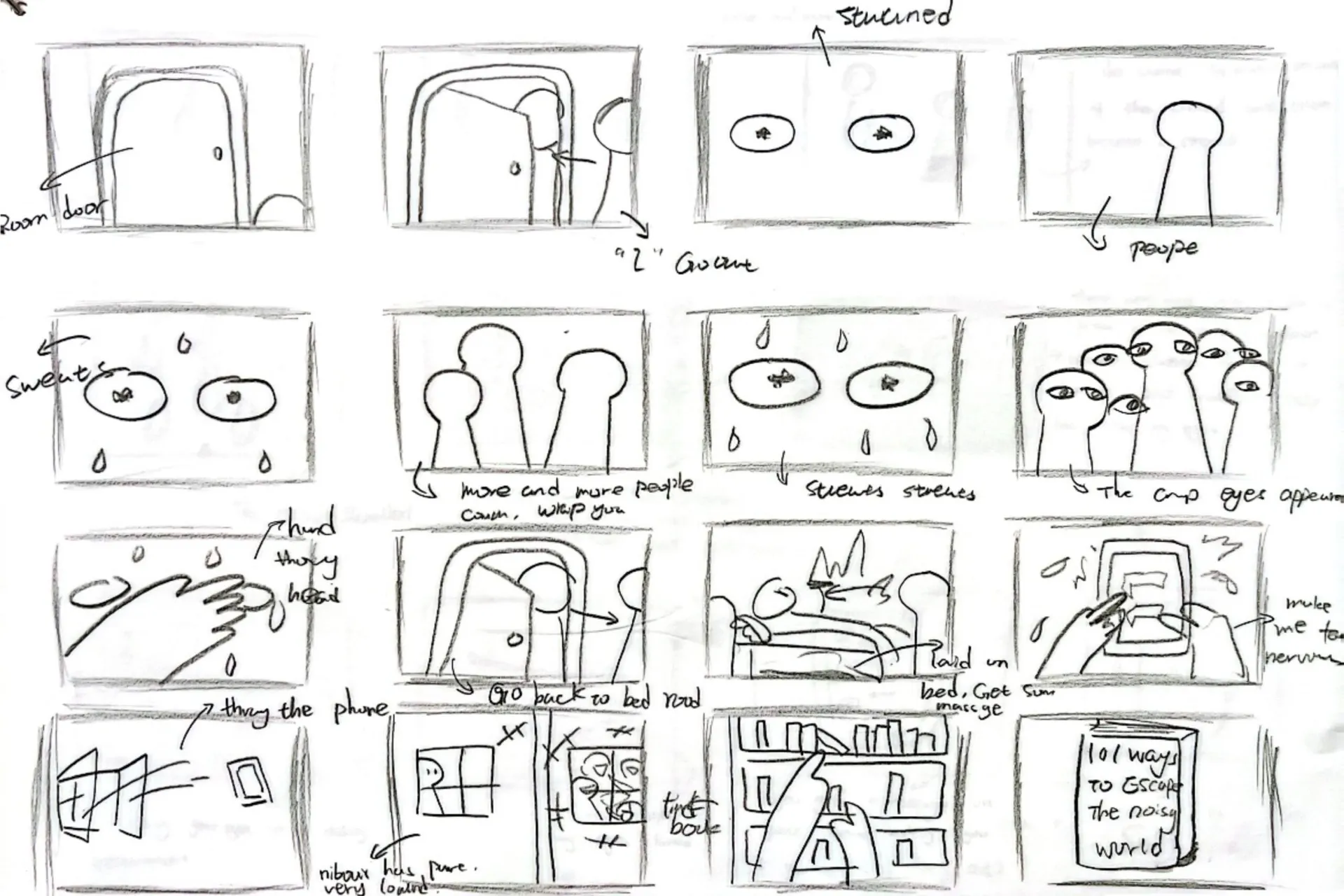 Throughout my work, I really felt that things were moving in the right direction. I tried many ways to express the emotions and inner world of social phobia. I stalled, I didn’t know how to express my feelings to a wider audience that couldn’t relate to social phobia. However, I am satisfied with the final animation, which presents my subject in a simple and clear way, making it easy for people who don’t know it to perceive the feelings and ideas it expresses. The soft backgrounds and proper voice-overs were my favorite parts and gave a lot of soul to my animation.