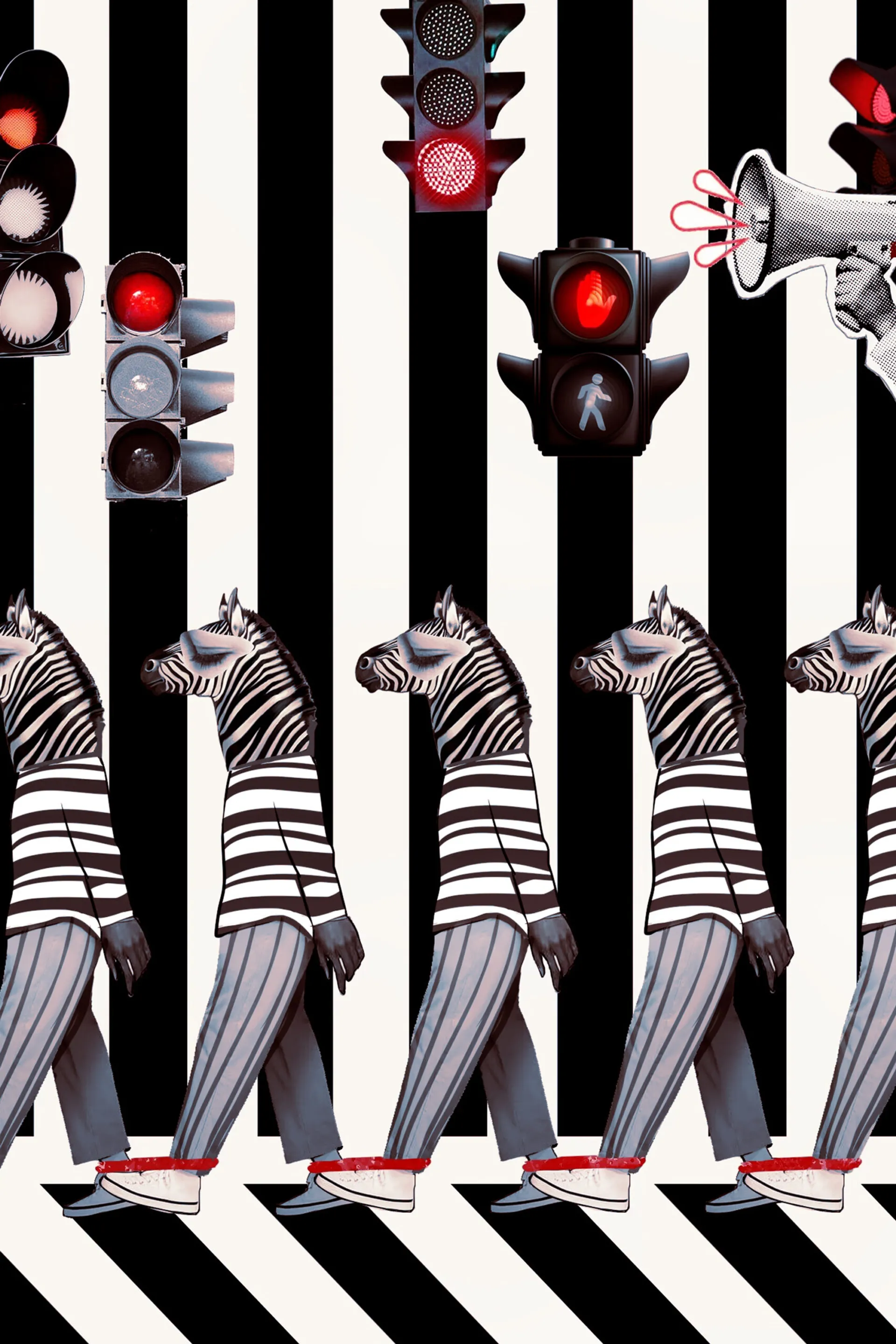 The conformity effect occurs in many aspects of our lives, and perhaps we have already followed mainstream actions and ideas without realizing it. Conformity can certainly bring us a sense of peace of mind and belonging, allowing us to adapt to the environment and integrate into society faster, but blindly conforming often has negative effects. I use collage posters to connect animals, insects and humans who live in group life, symbolizing the characteristics of conformity and showing the potential harm of it. I hope to inspire reflection among the audience through my works, raise their awareness of conformity, and emphasize the significance of independent choice and thinking.