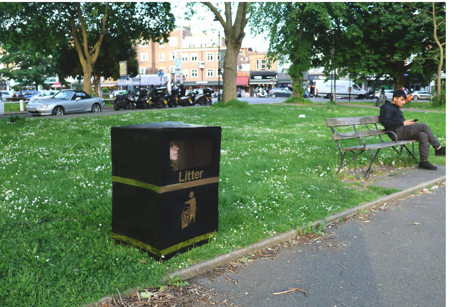 I ALWAYS FEEL LIKE SOMEBODY’S WATCHIN’ ME : A series of three products for my including a bus suit, a grass cress blanket and a portable bin, all disguises are created for the context of becoming undetectable in London as a response to being caught on CCTV 70 times a day.